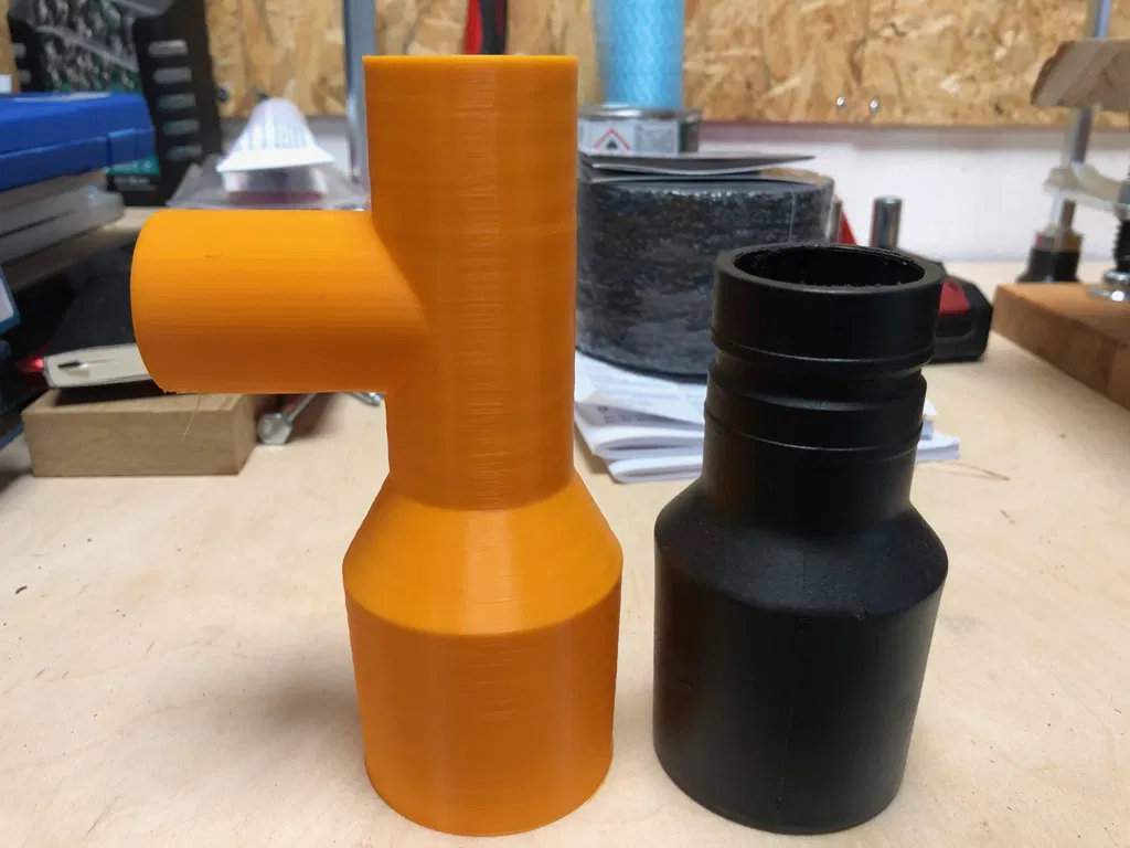 Chuyển đổi ống hút bụi cho máy cưa bàn Dewalt DW745. Bộ chuyển đổi chữ T này giúp bạn kết nối ống hút bụi một cách dễ dàng, giữ cho khu vực làm việc sạch sẽ.