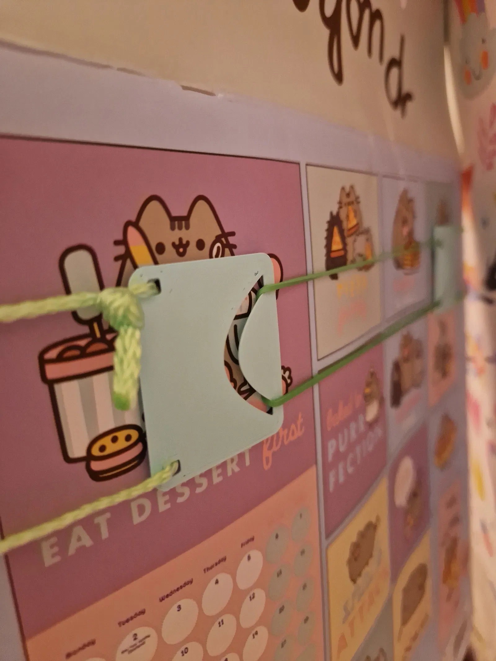 Lịch của con gái mình không có ô xem ngày, nên mình tạo ra cái này. Với ba bộ phận in 3D, dây và dây thun, bạn có thể dễ dàng thêm chức năng này vào lịch của mình.