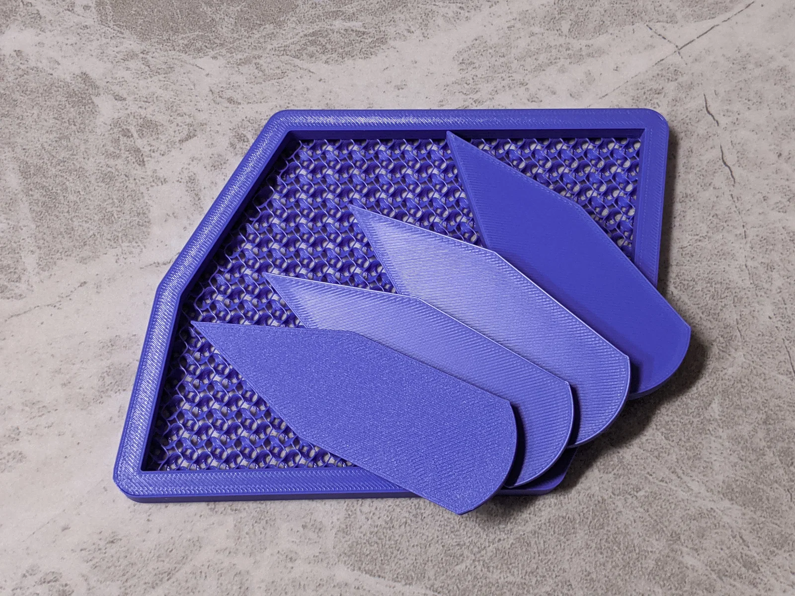 Mẫu hộp bút chì/puzzle này là một thiết kế kinh điển của Edi Nagata. Mục tiêu là xếp 4 mảnh hình bút chì vào hộp. Ông còn chia sẻ bản phác thảo để bạn tự làm.
