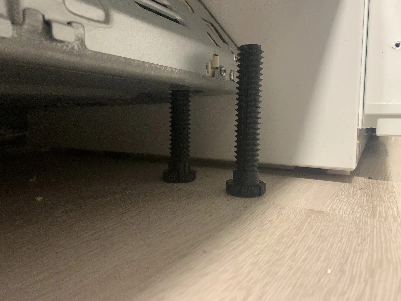 Hồi dọn nhà, có 2 cái chân máy rửa chén Miele (mã số 6033081) bị gãy. Mẫu này được tạo ra để thay thế. Các chân phía trước gắn vào hoàn hảo. Chưa thử các chân phía sau.