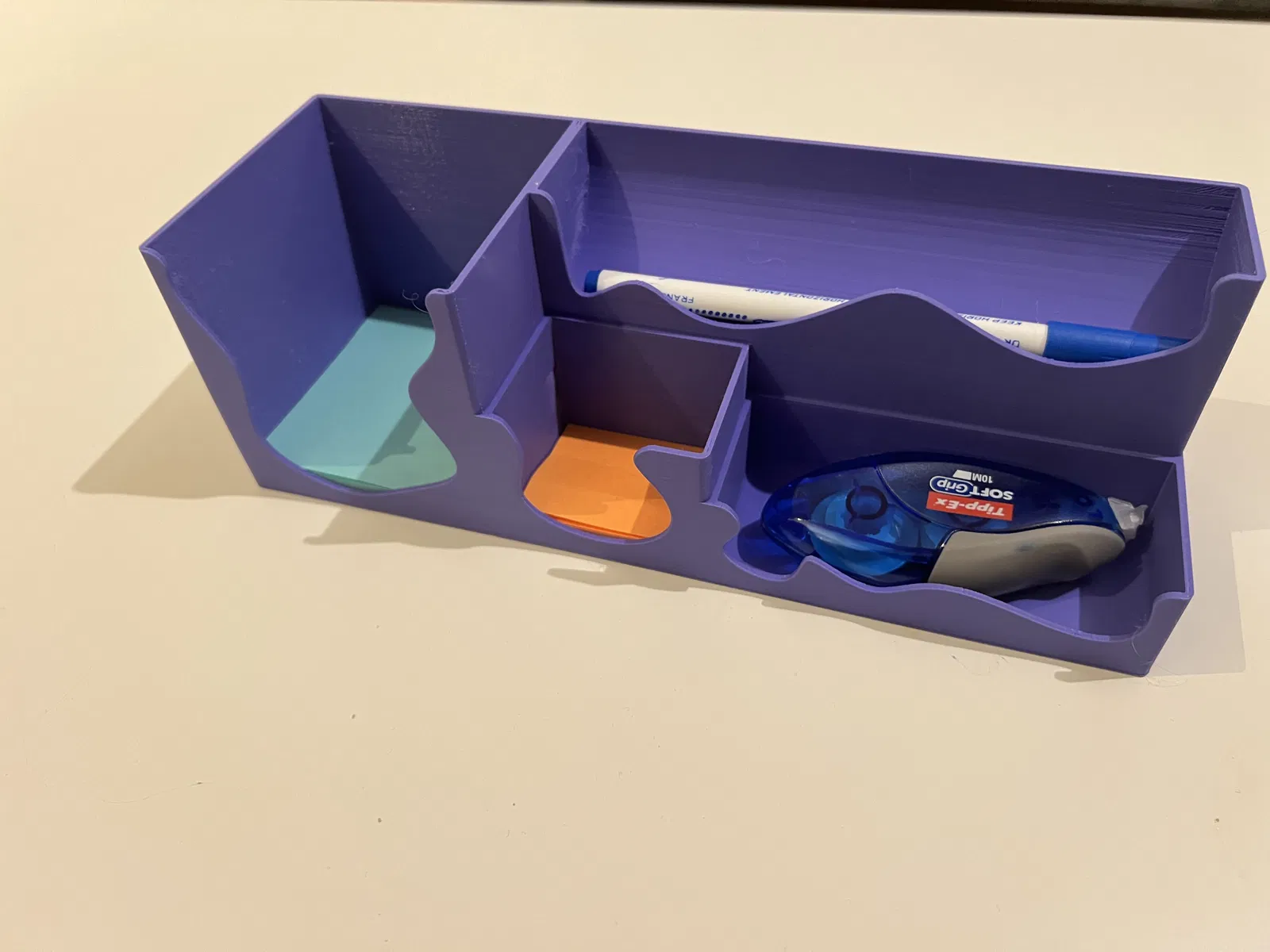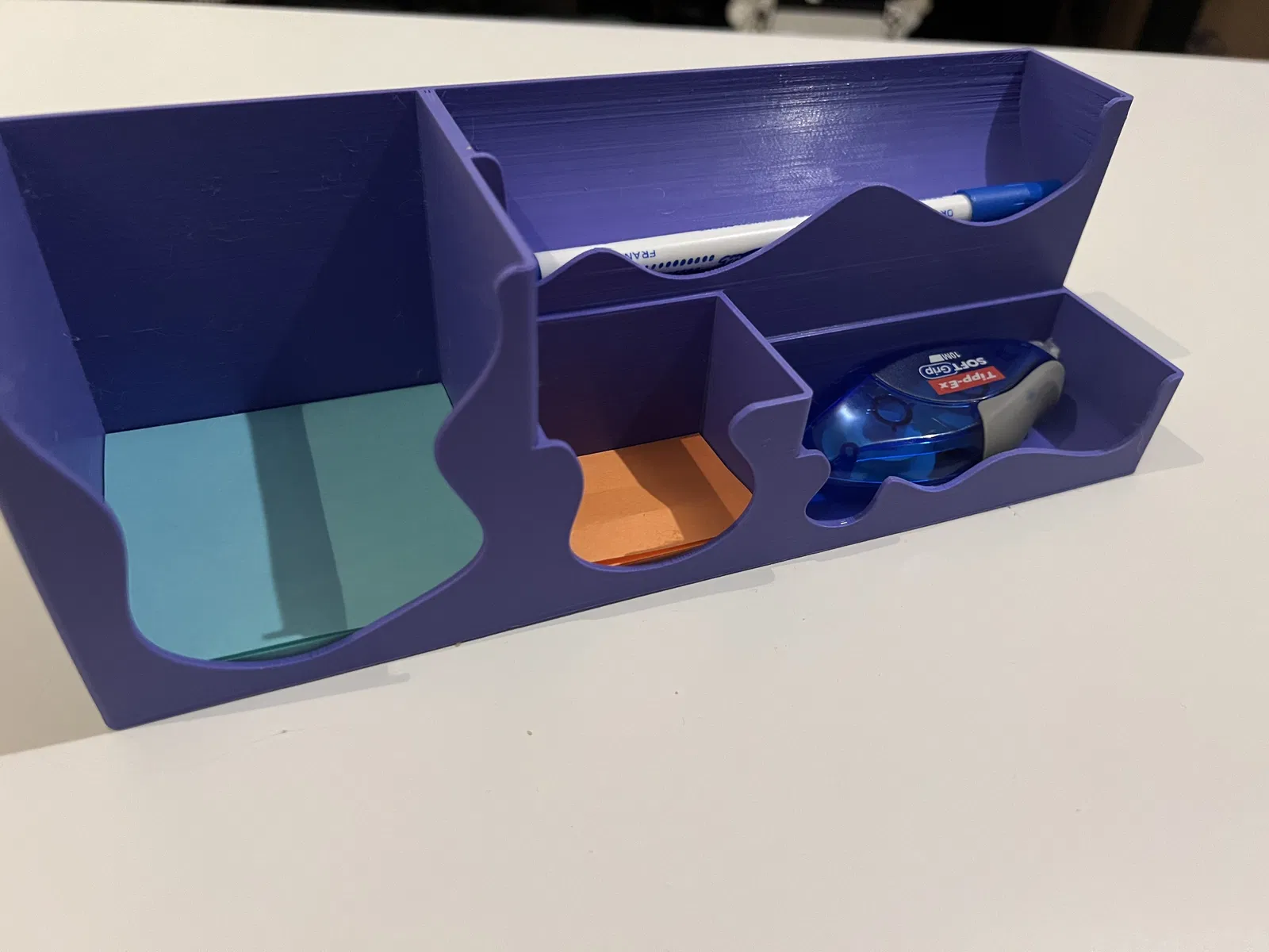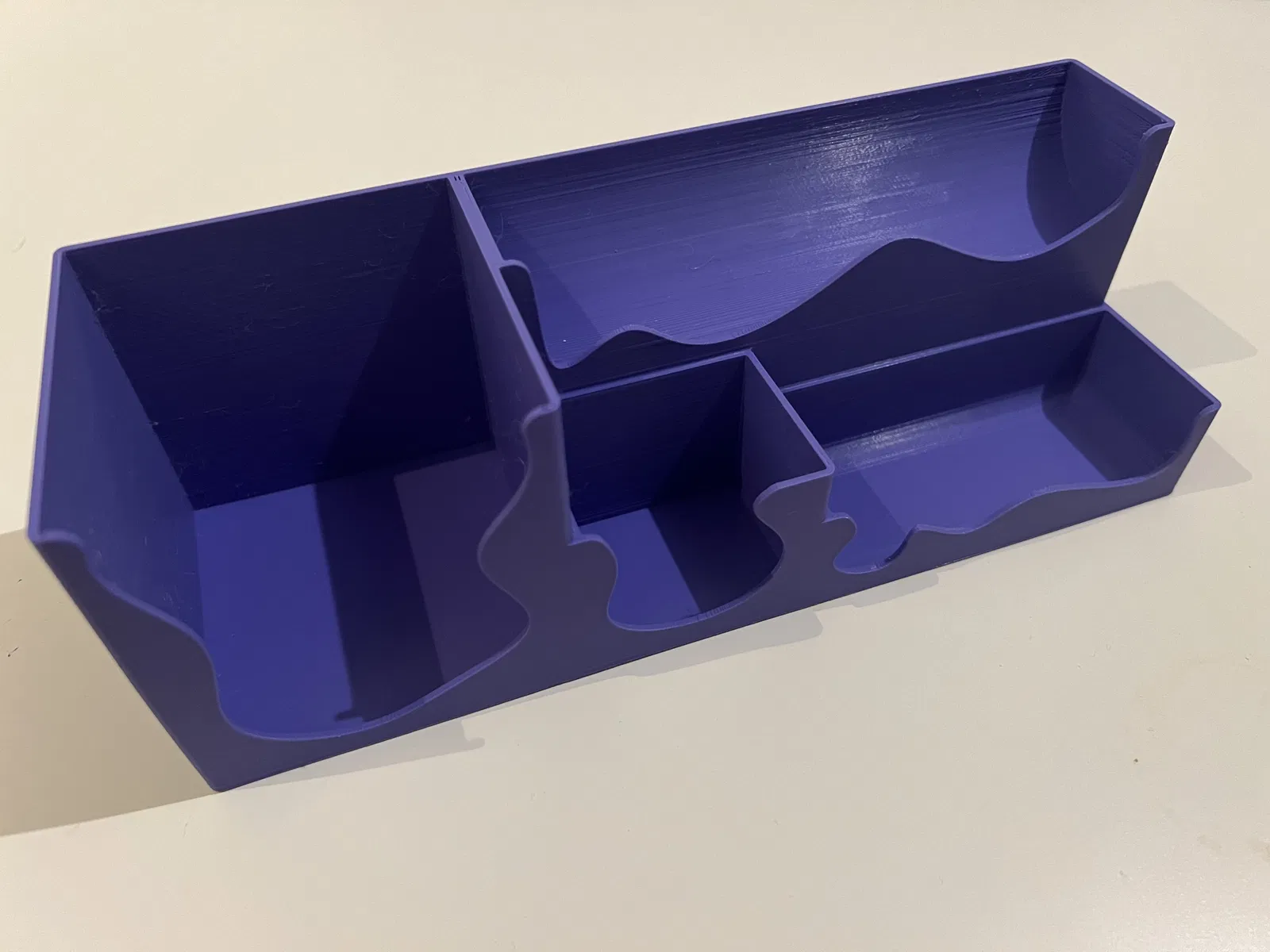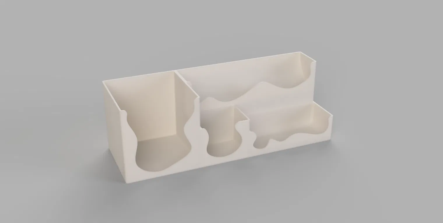 Mẫu này được thiết kế để tối ưu không gian, đặc biệt hữu ích khi bạn muốn tận dụng khoảng trống dưới màn hình máy tính để sắp xếp đồ đạc gọn gàng. Rất hợp để đựng bút và các vật dụng văn phòng khác.
