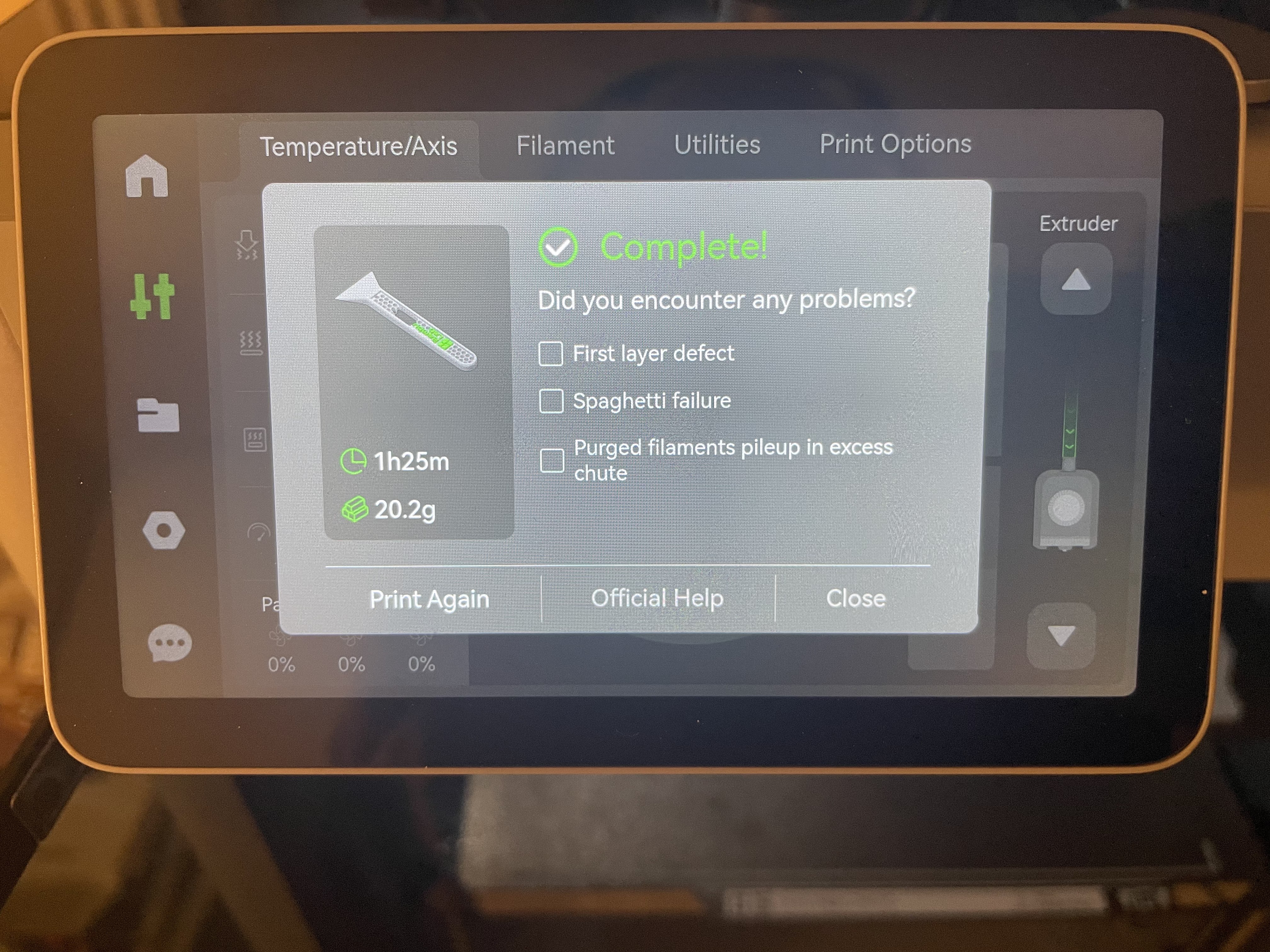 Sau khi in xong cái scraper tiêu chuẩn có sẵn trên X1C, tôi nhanh chóng nhận ra 2 điều: