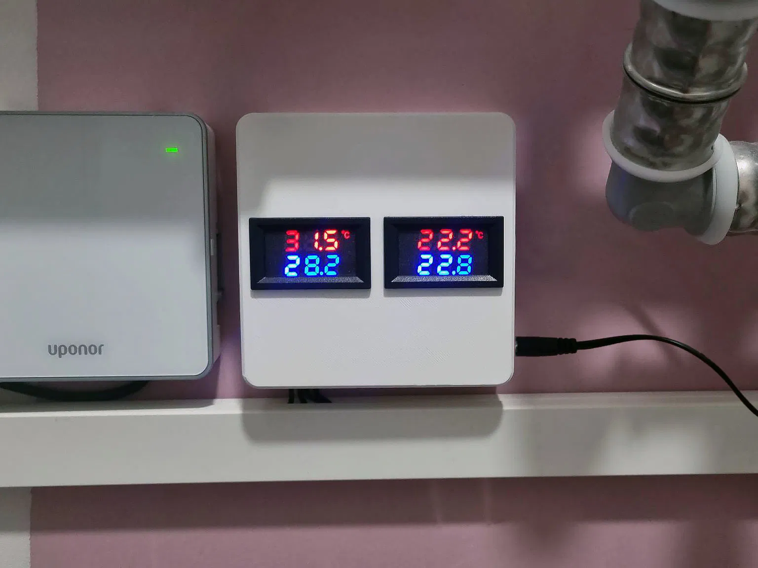 Đây là một cái vỏ cho hai màn hình cảm biến nhiệt độ, có tích hợp quản lý cáp và cổng nguồn.