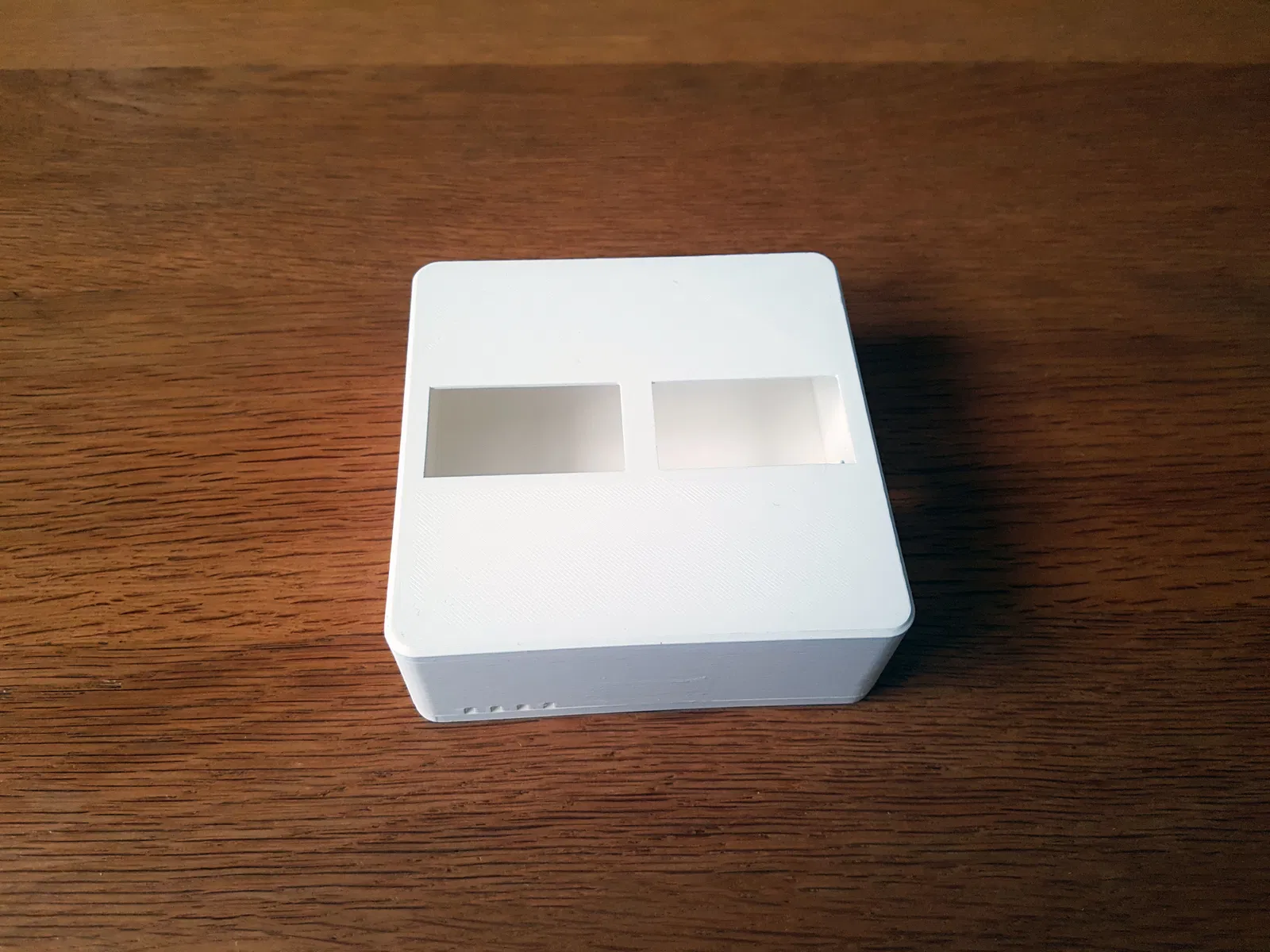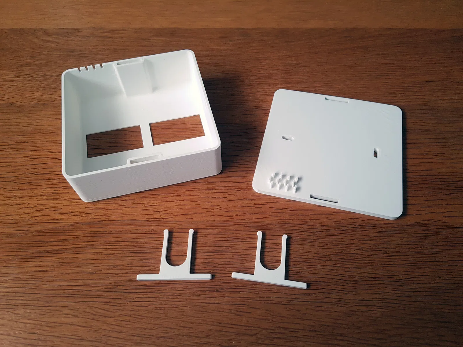 Đây là một cái vỏ cho hai màn hình cảm biến nhiệt độ, có tích hợp quản lý cáp và cổng nguồn. Cần lưu ý khi lắp màn hình có thể quá chặt, cần chà nhám hoặc tăng kích thước lỗ hở. Các bộ phận đã được cải tiến để tăng độ bền. In không cần hỗ trợ.