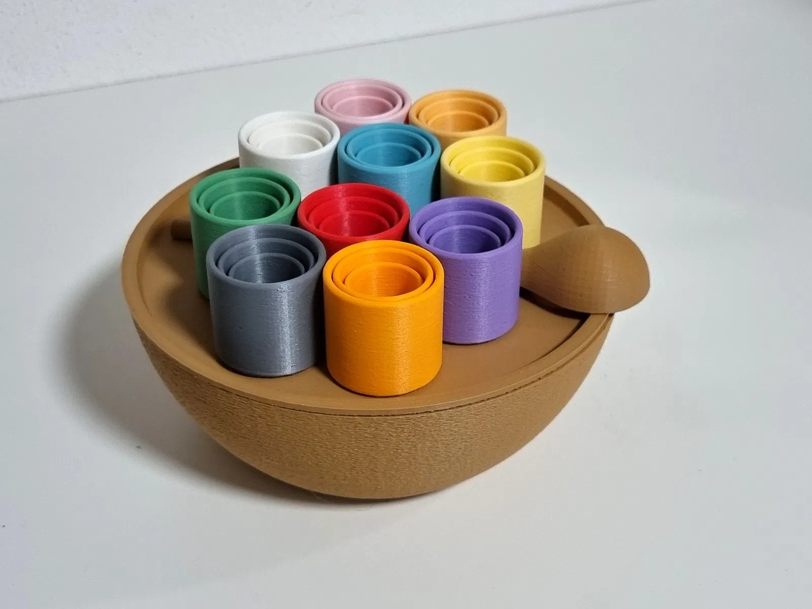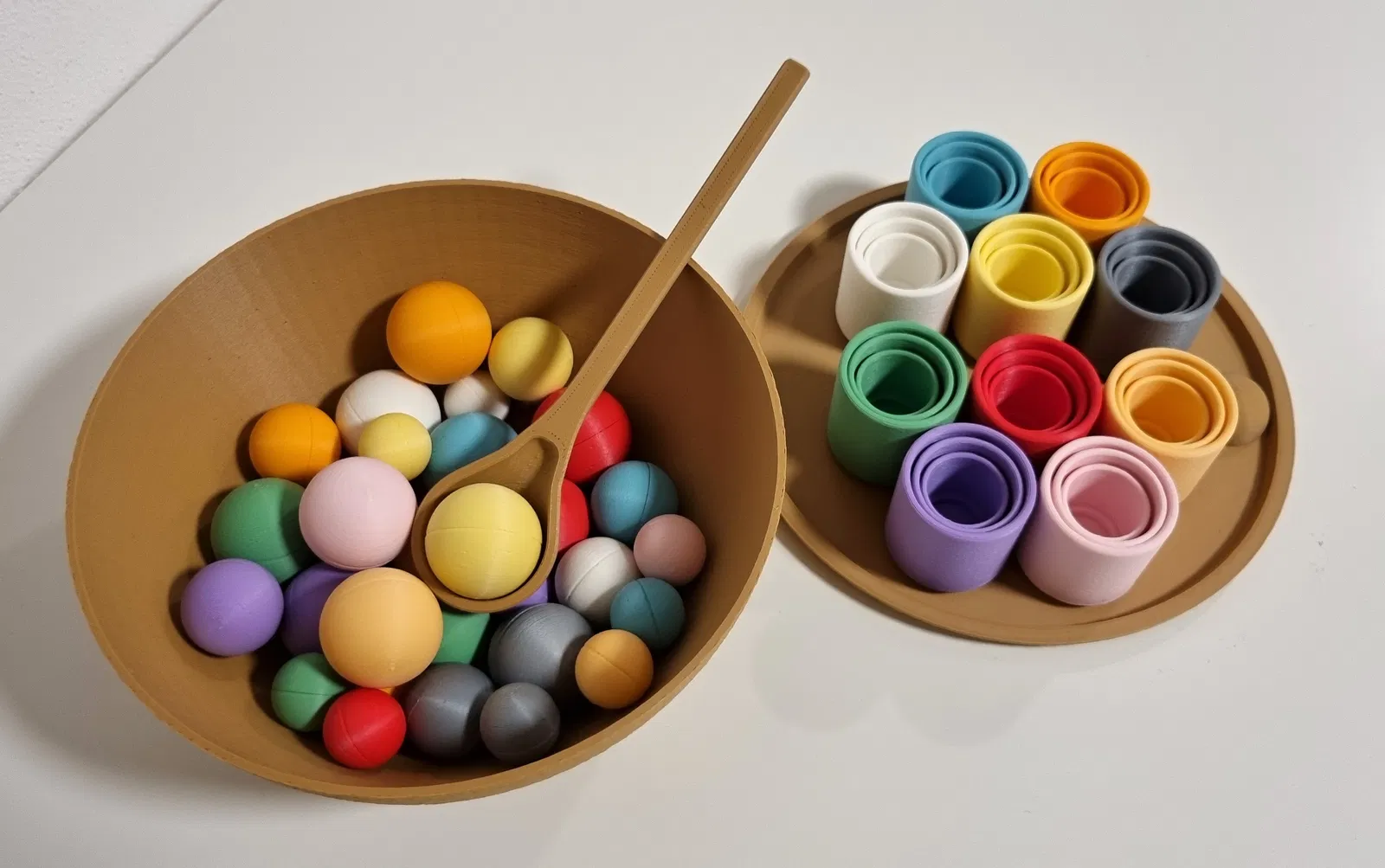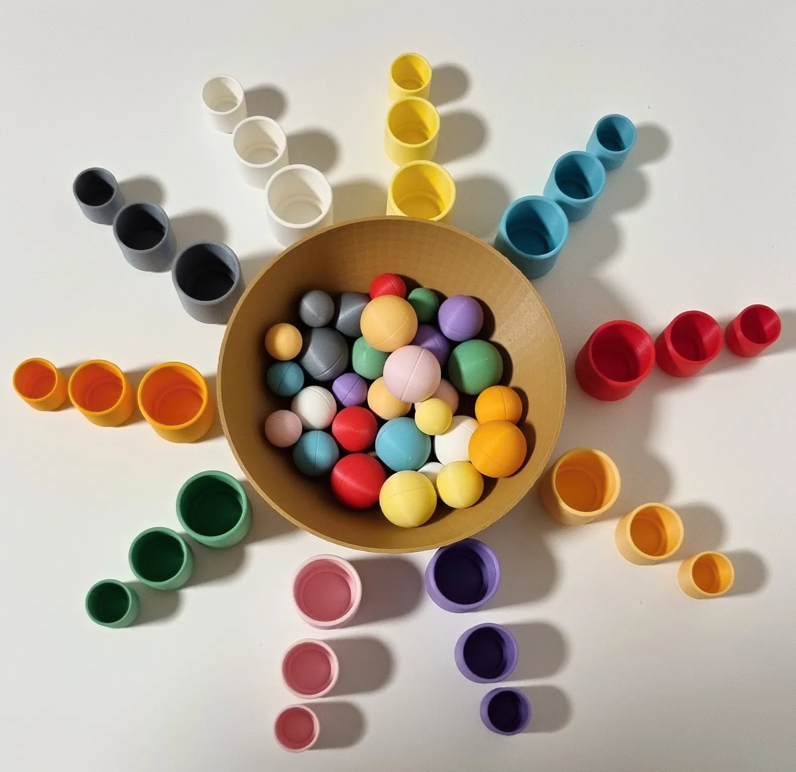 Trò chơi thả bi vào cốc giúp trẻ em hoặc người lớn tuổi luyện khả năng. Có nhiều kích cỡ bi và cốc để lựa chọn, bạn có thể tự dán bi 2 màu để in ra cốc 2 màu độc đáo. Rất vui và hữu ích cho mọi lứa tuổi!
