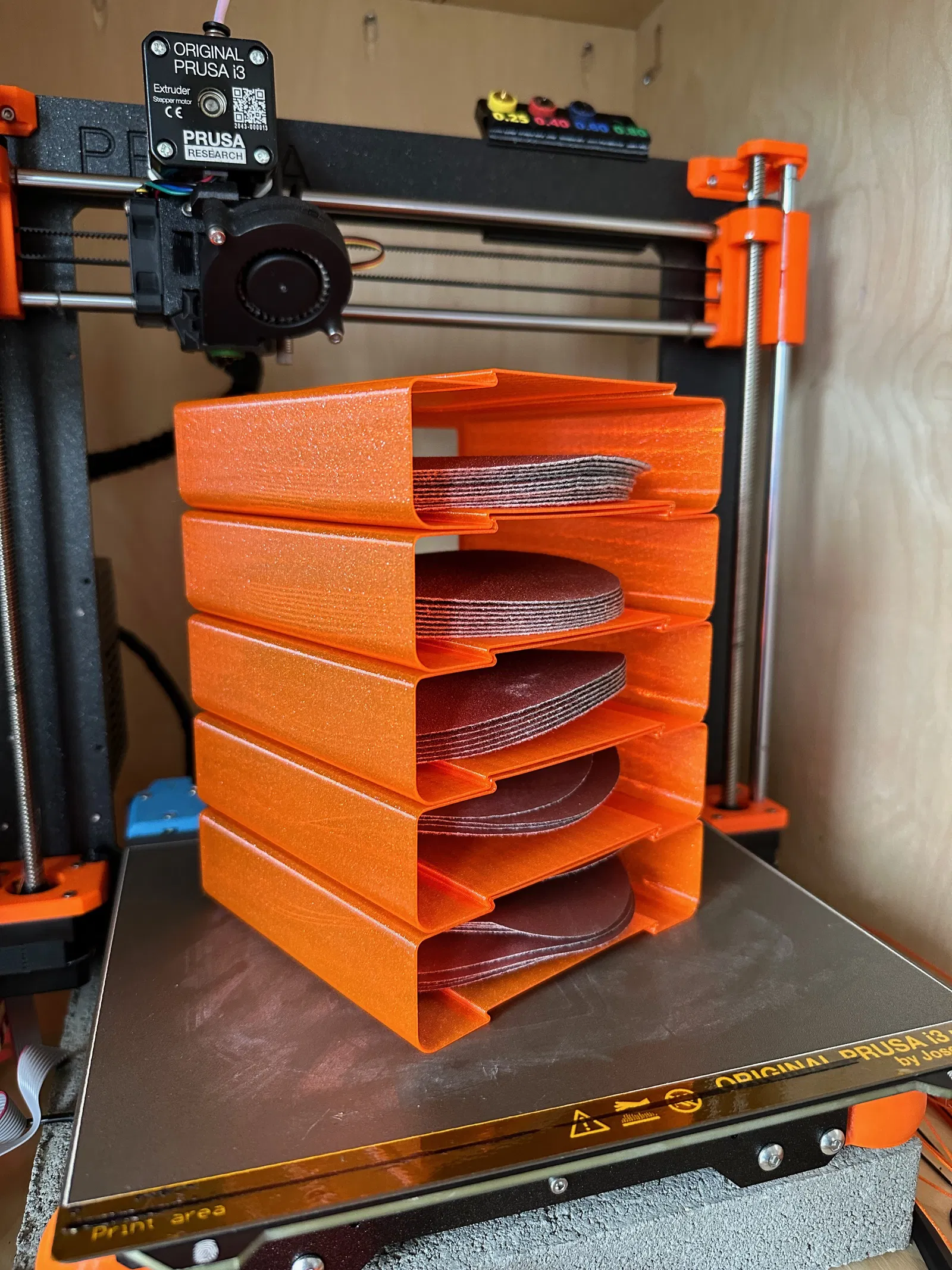 Ban đầu tôi định làm một cái organizer nhỏ cho đĩa chà nhám bằng gỗ, nhưng dạo này trời lại lạnh và mưa. Máy in 3D không bận tâm lắm đến thời tiết khắc nghiệt bên ngoài (không giống như máy cưa bàn của tôi mà tôi dùng ở sân sau), nên tôi quyết định làm một cái organizer in 3D thay thế.