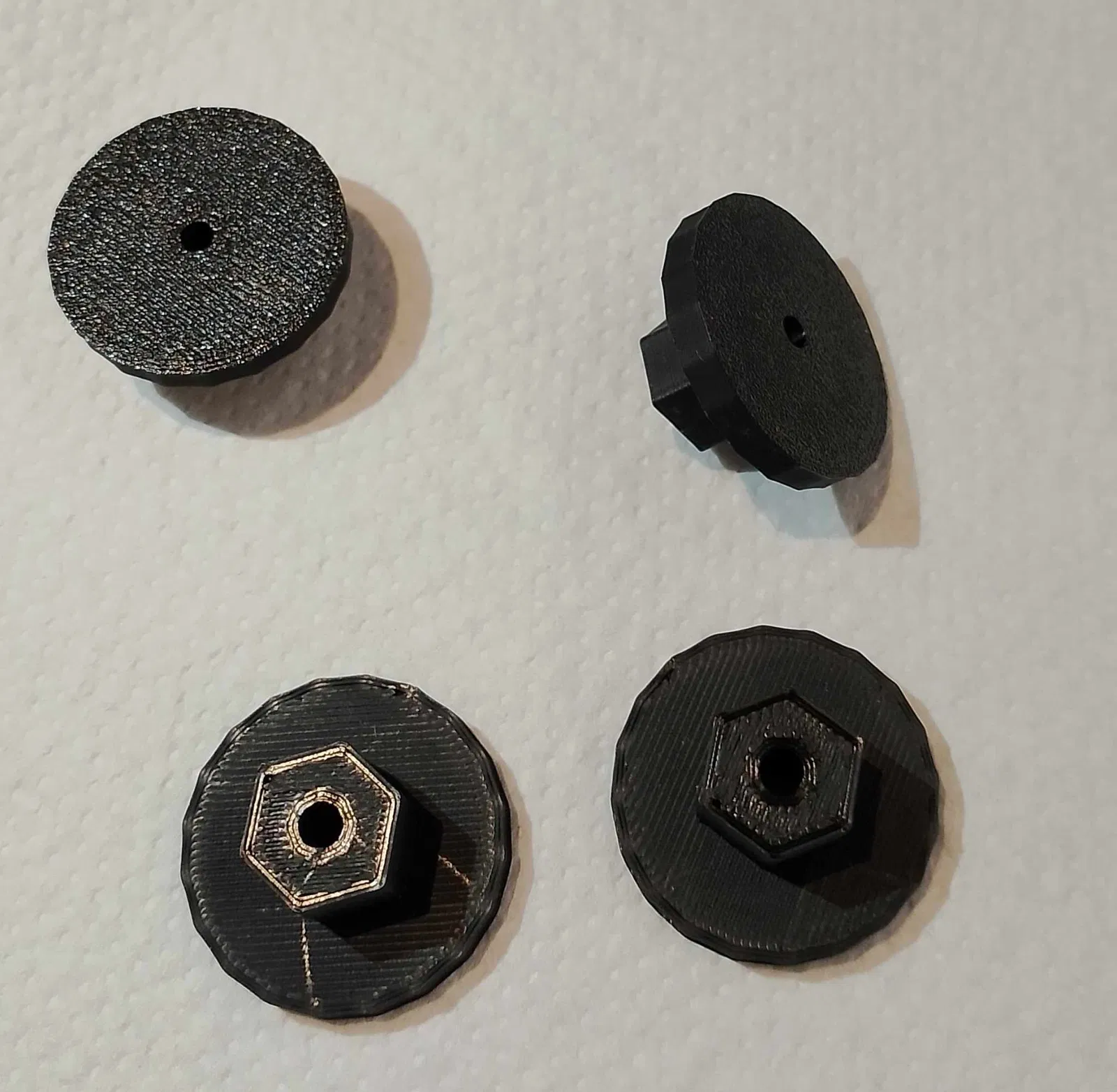 Ốc nhựa dùng để gắn dè (vè) trong xe. Đường kính lòng 4mm, đường kính vành 30mm và kích cỡ cờ lê 13mm. Infill 100%, có thể cần phải khoan lại lỗ bên trong.