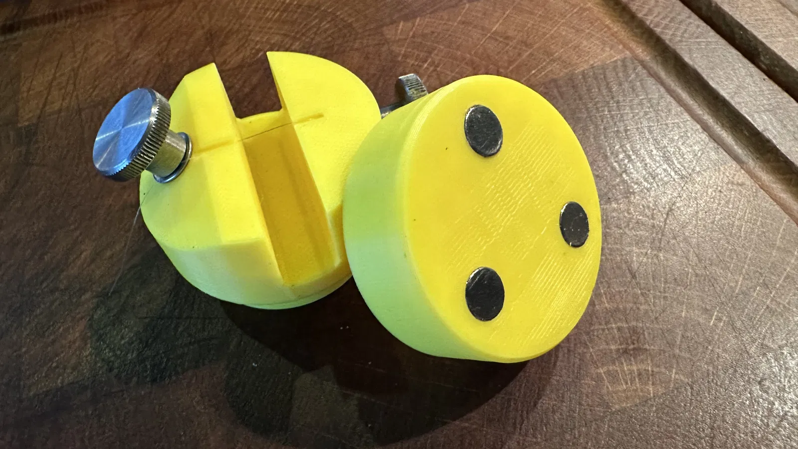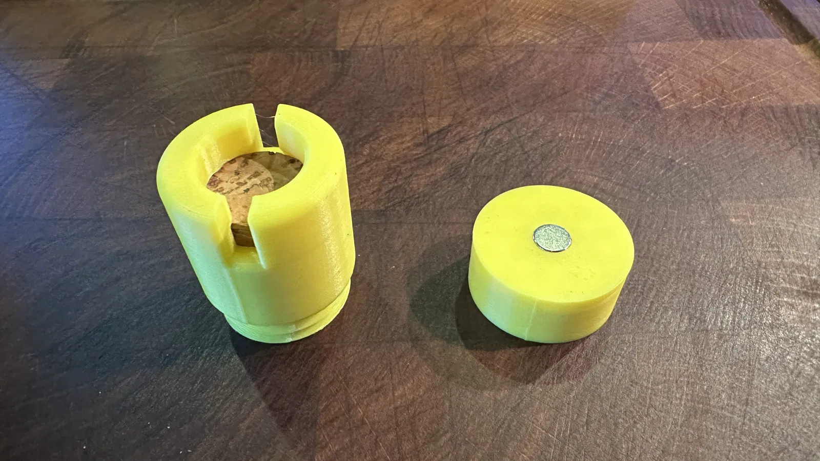 Cuối cùng, tôi đã tạo ra một điểm tựa giống như trên máy đo BESS gốc. Một nút rượu vang tiêu chuẩn có thể được chèn vào điểm tựa để bảo vệ lưỡi dao. Cũng có thể sử dụng nam châm ở đây.