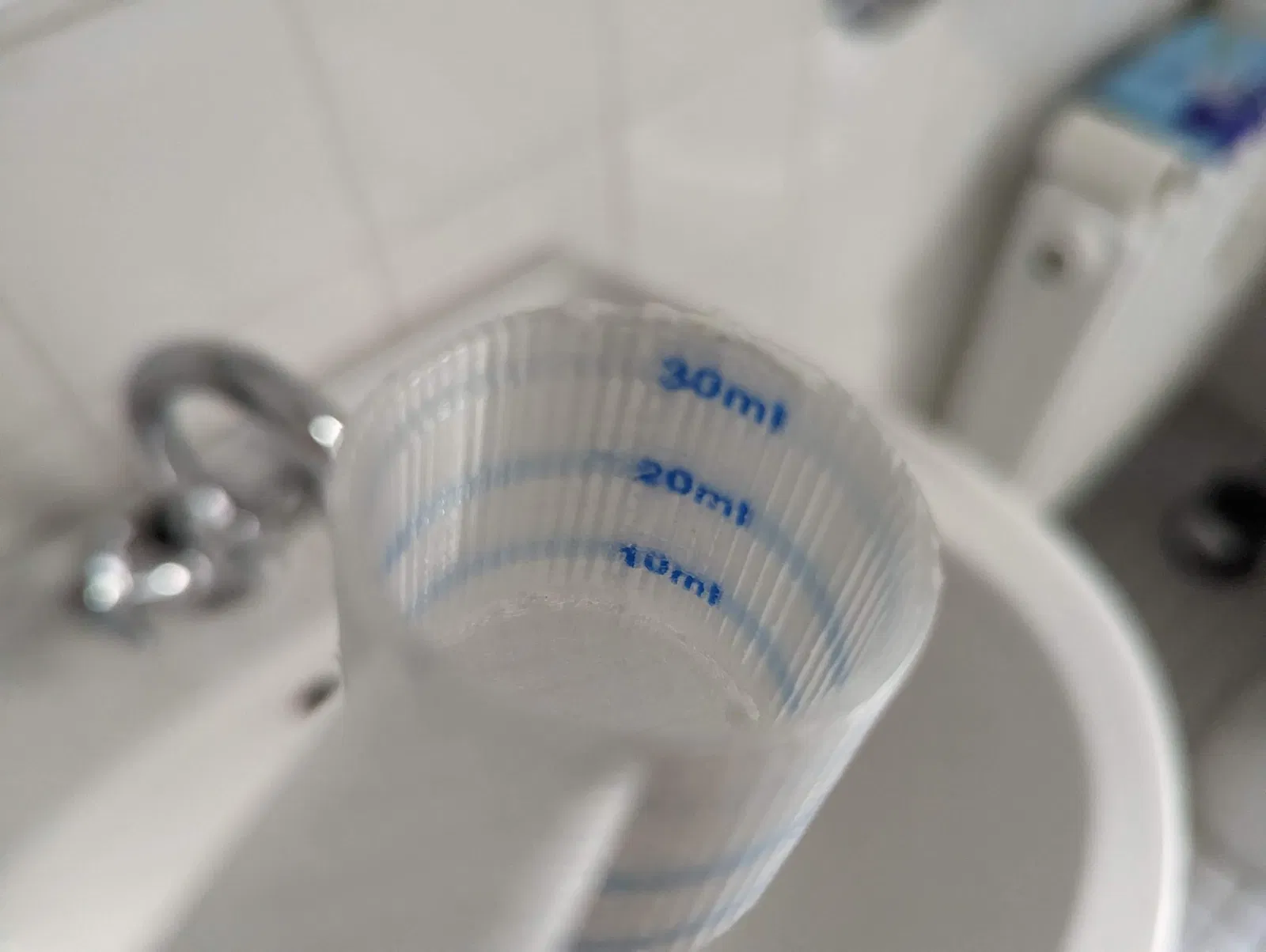 Một muỗng đo, với 10,20,30 ml tốt nghiệp. Tôi đã sử dụng hỗ trợ dưới tay cầm, Havenot đã cố gắng in nó lộn ngược.