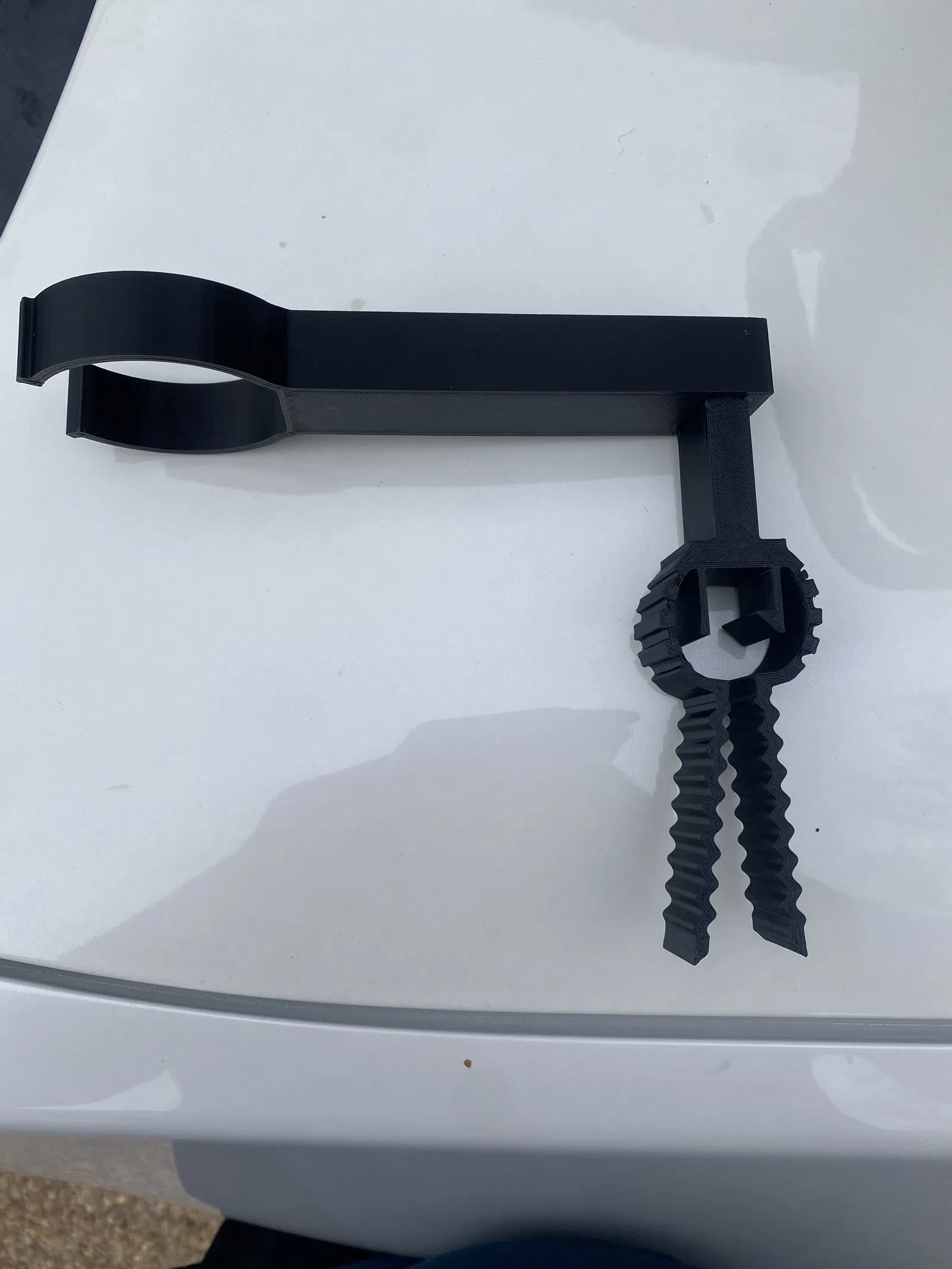 Đây là một cái kẹp dùng để giữ chai Busio loại 1 gallon trên xe hơi. Sản phẩm này được làm từ nhựa PETG, có hỗ trợ (support) khi in 3D.