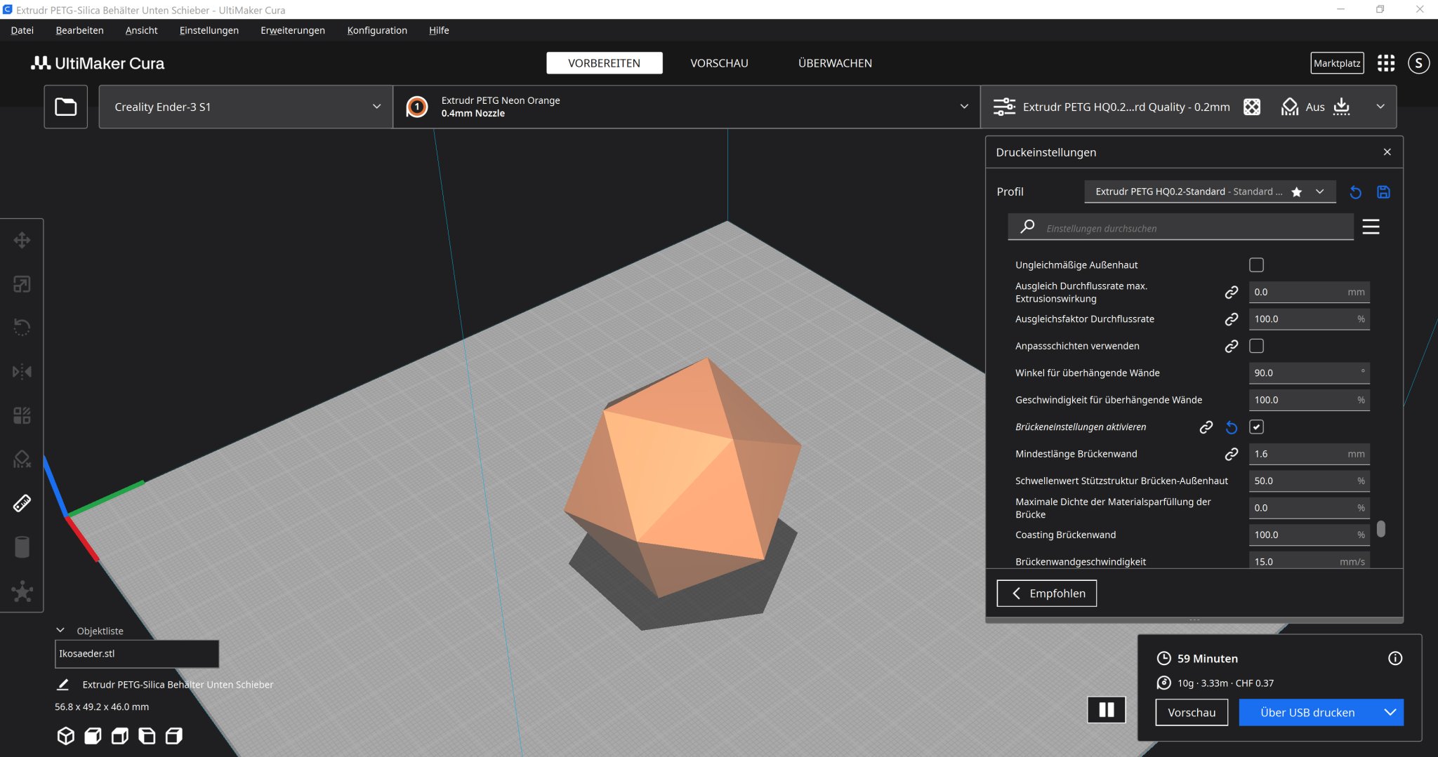 Filament PETG (Extrudr-Neon Orange) hoặc PLA 1.75