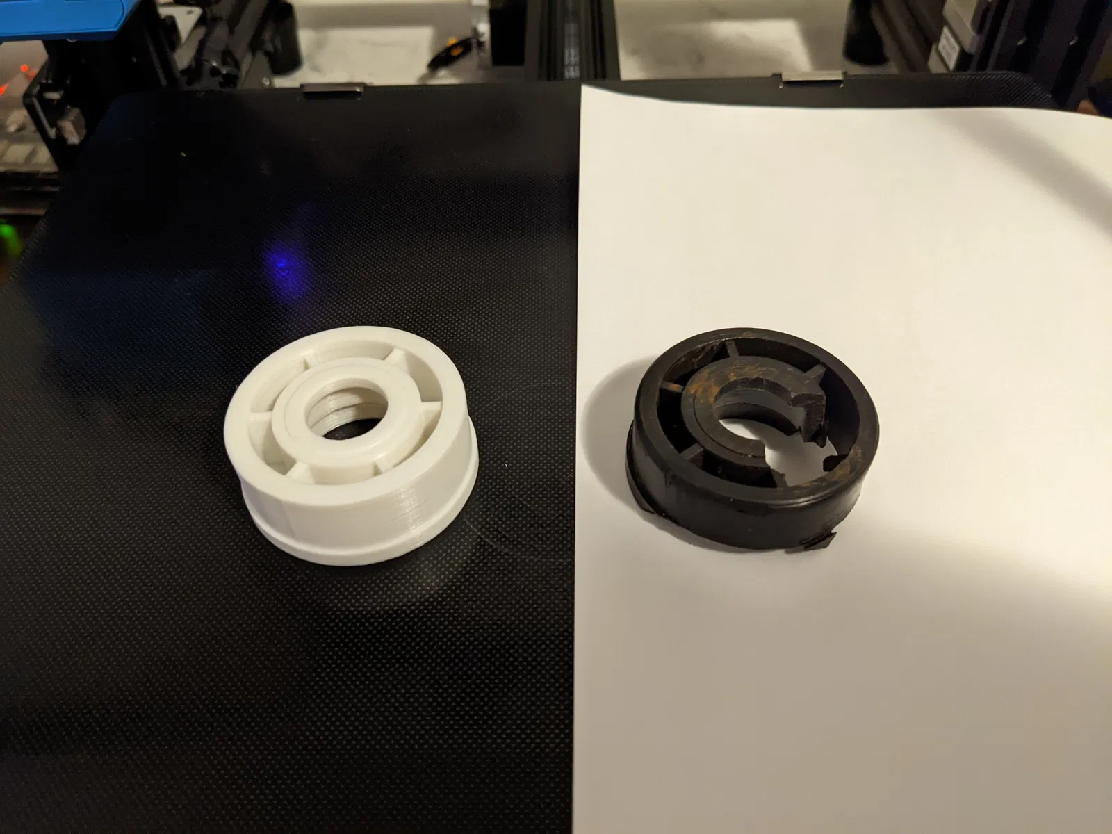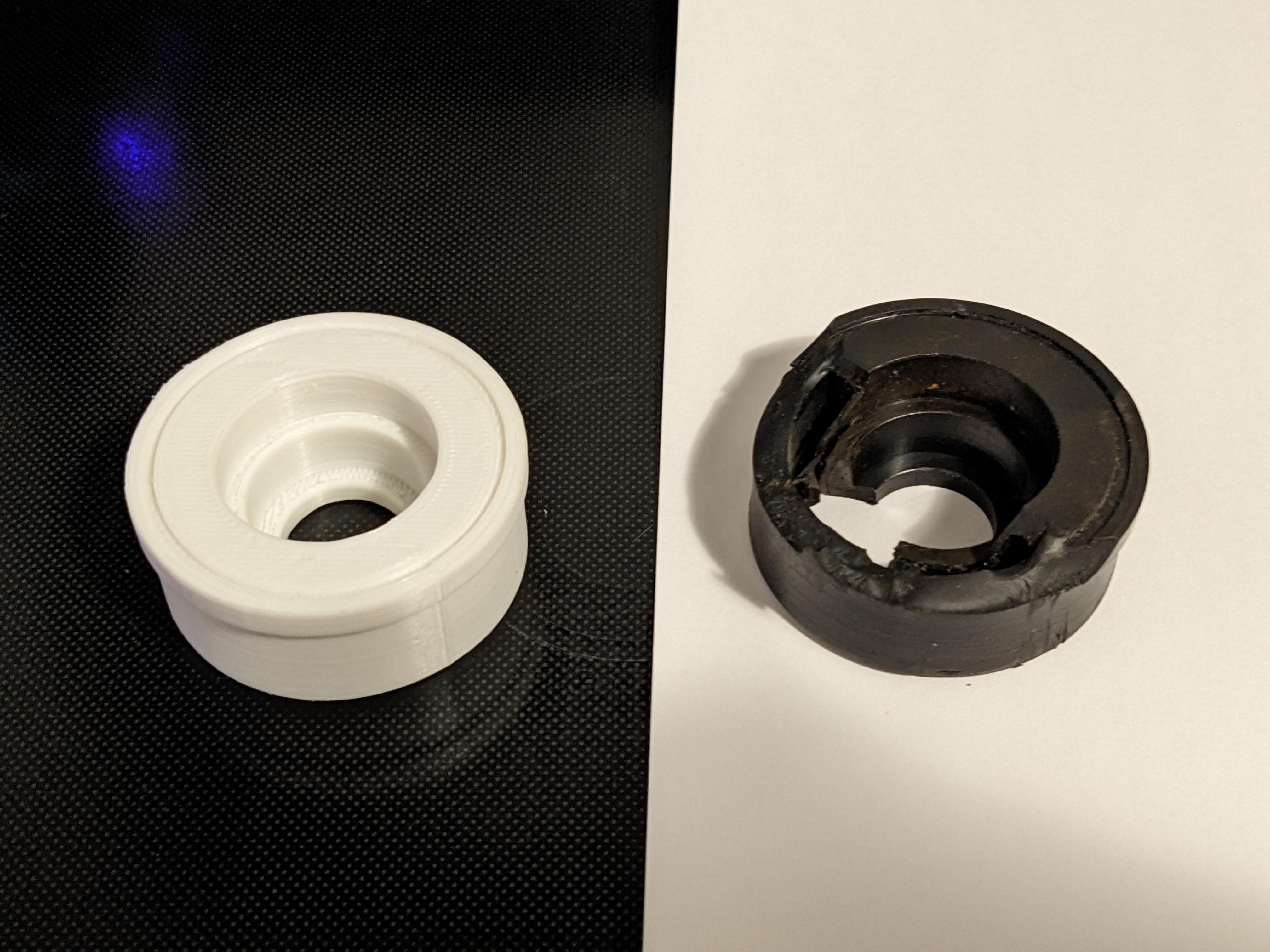 Cập nhật - Nên dùng phiên bản (v2) vì nó có kích thước chuẩn, còn phiên bản (v1) hơi sai một chút. Tôi cũng đã thêm phần vát cạnh cho bản (v2) để dễ lắp vào con lăn hơn. 3 ảnh cuối cho thấy bản (v2) được lắp vào hai con lăn bên trái, ảnh cuối cùng hiển thị bộ phận in bên trái và con lăn gốc bên phải.