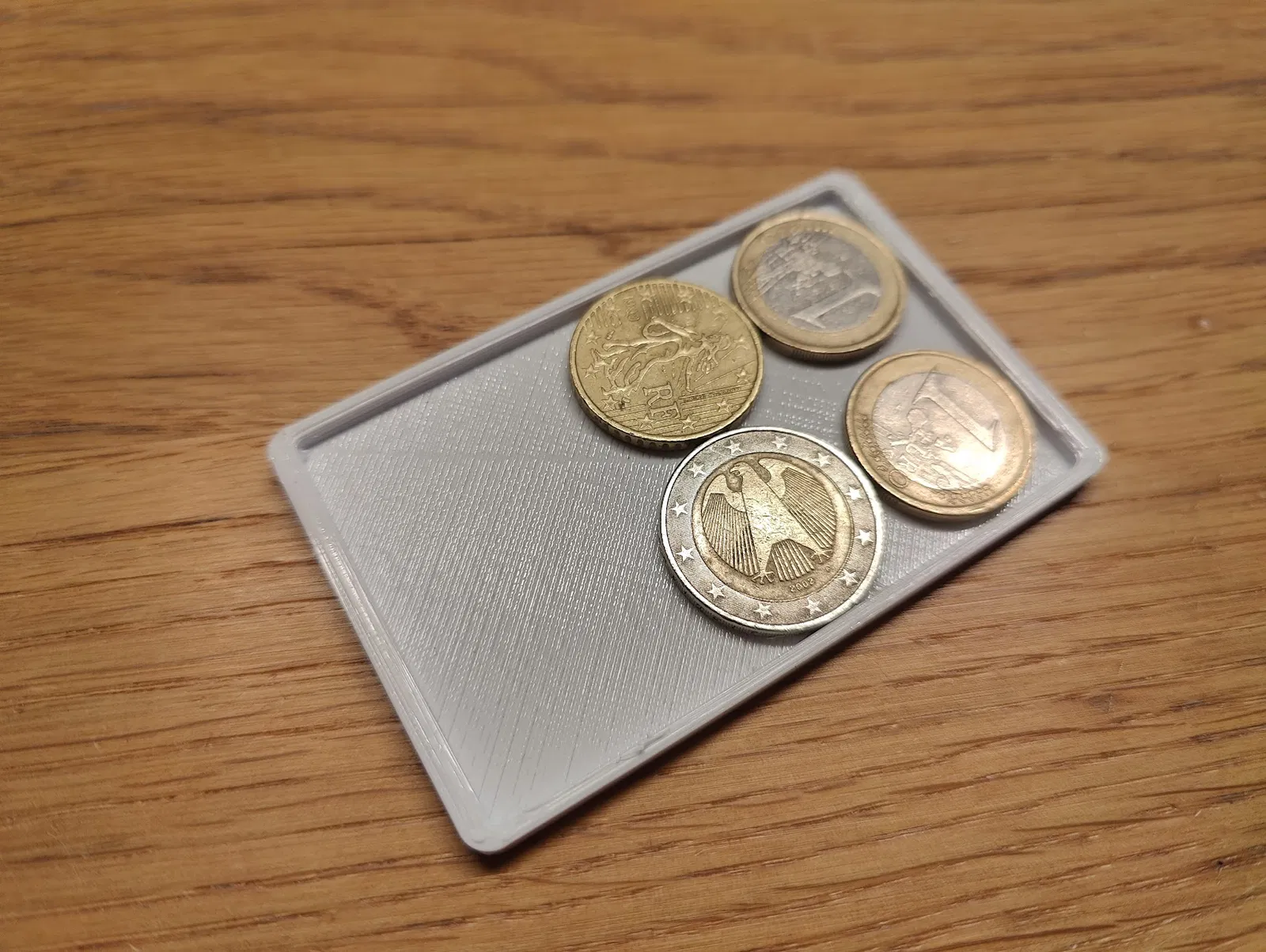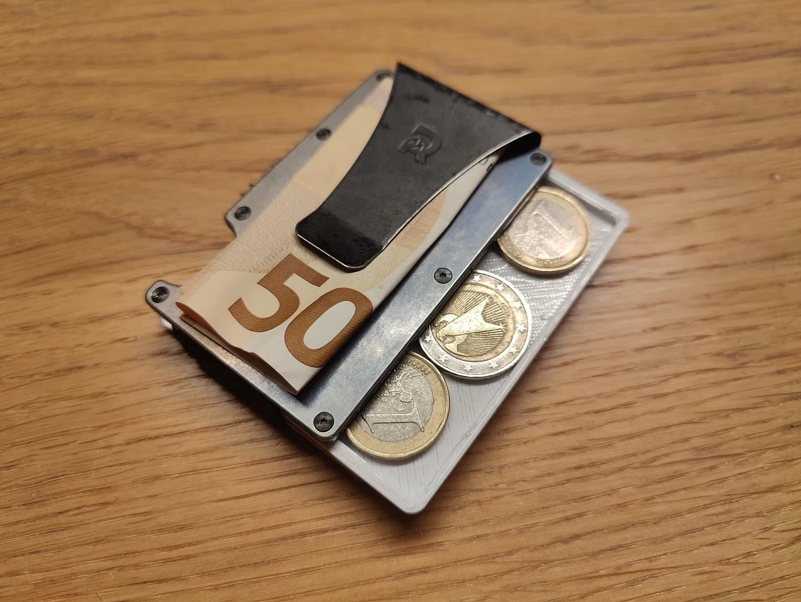 Cách đơn giản mà hiệu quả để cất giữ vài đồng xu trong ví, tránh bị rơi lung tung trong túi. Phiên bản V2 này có thêm chốt chặn giữ thẻ nhựa. Kích thước ví rất hợp với tiền Euro.