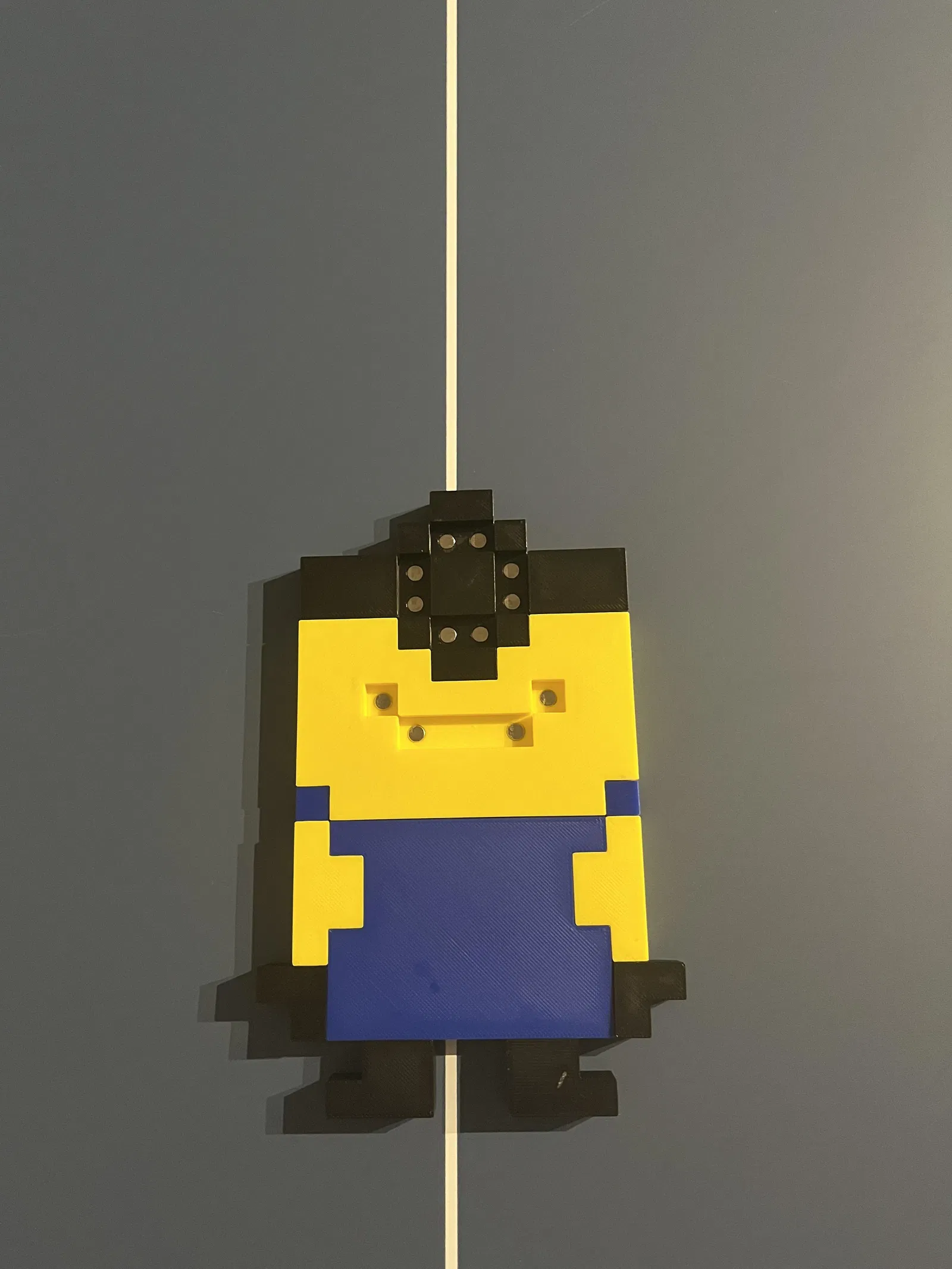 Đây là một Mảnh ghép Minion Nam châm vui nhộn cho mọi lứa tuổi. Nó yêu cầu tối đa 72 nam châm 5x3 mm và tối thiểu 52. Nếu bạn không muốn tốn nhiều nam châm như vậy, bạn có thể đặt 1 viên thay vì 2 ở một số vị trí nhưng nó sẽ làm giảm độ bám dính.