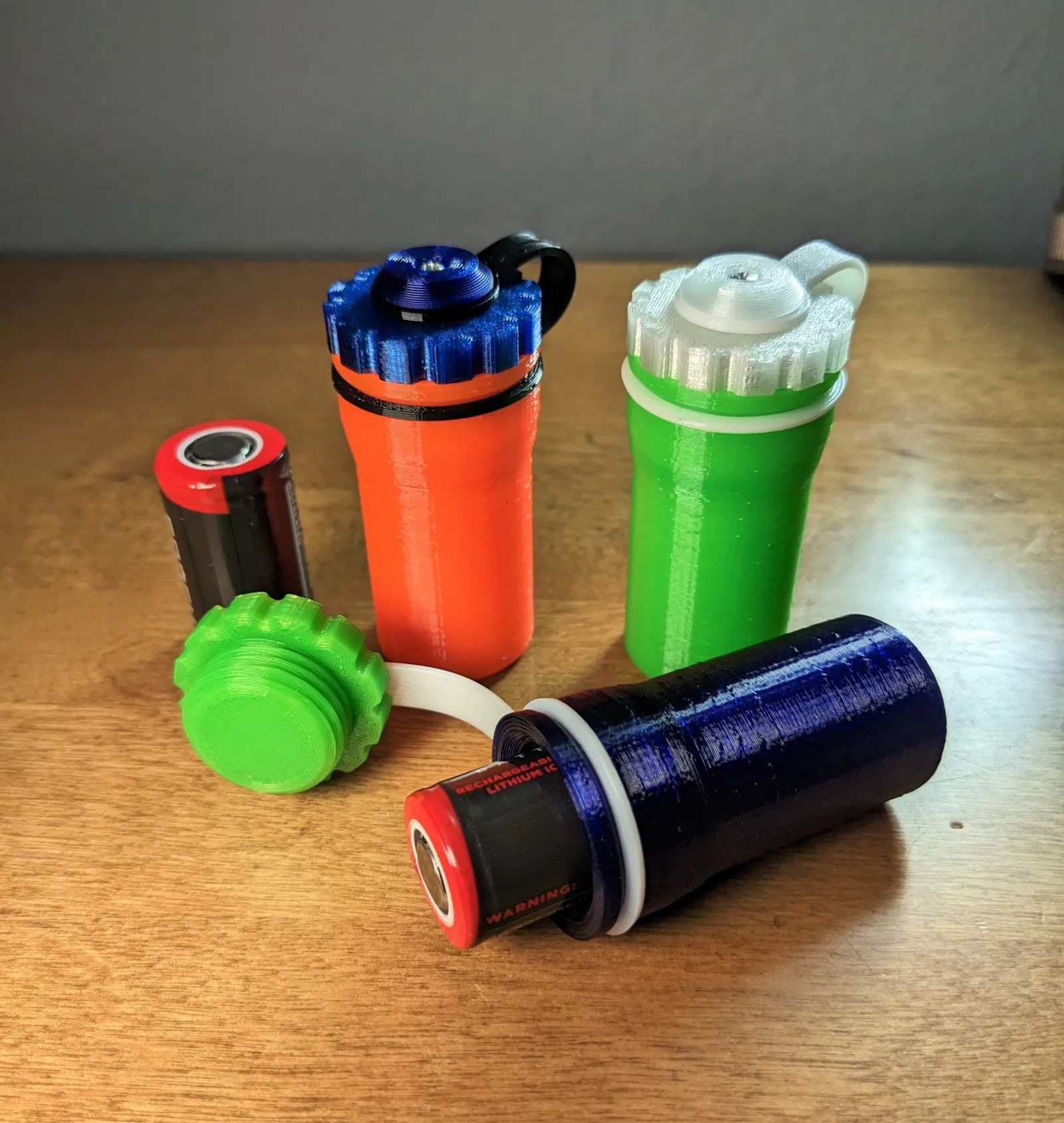 Thân chính của giá đỡ pin được in bằng vòi phun 0.6mm với chiều cao lớp 0.2mm. Nắp, giữ dây đeo, và dây đeo được in bằng vòi phun 0.4mm và chiều cao lớp 0.2mm.