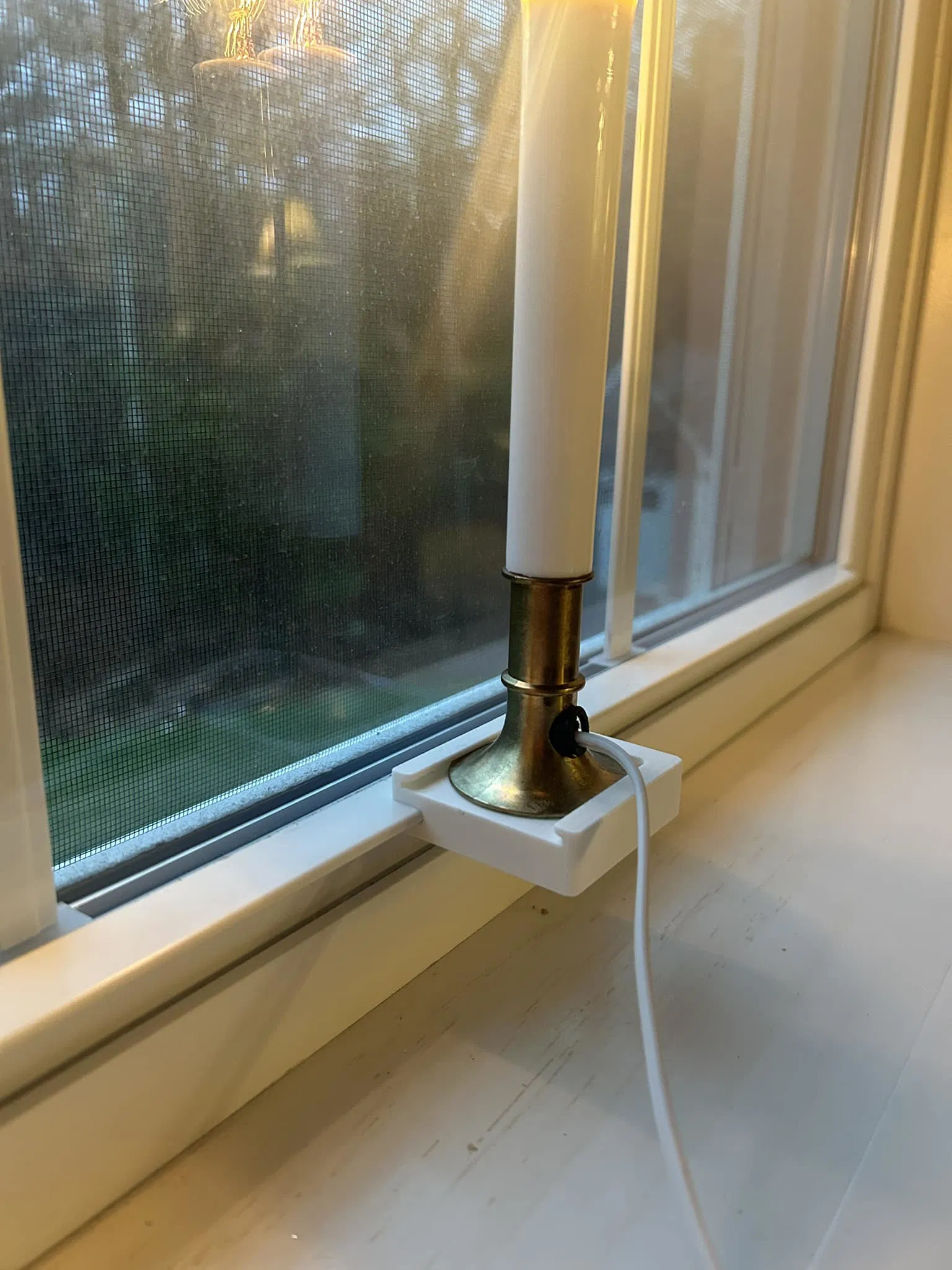 Tôi thiết kế cái đế nến này để giữ chắc đèn cầy trên mép cửa sổ Harvey Slimline và Anderson Windows. Cái này thay thế mấy cái giác hút dở tệ đi kèm với đèn cầy mà chẳng bao giờ dính chắc và cứ rớt hoài. Lưu ý là tôi chưa có thử gắn lên cửa sổ Anderson nên không chắc lắm nha, nhưng tôi đã chỉnh sửa mẫu gốc để phù hợp với cửa sổ Anderson dựa trên kích thước do một người dùng khác cung cấp.