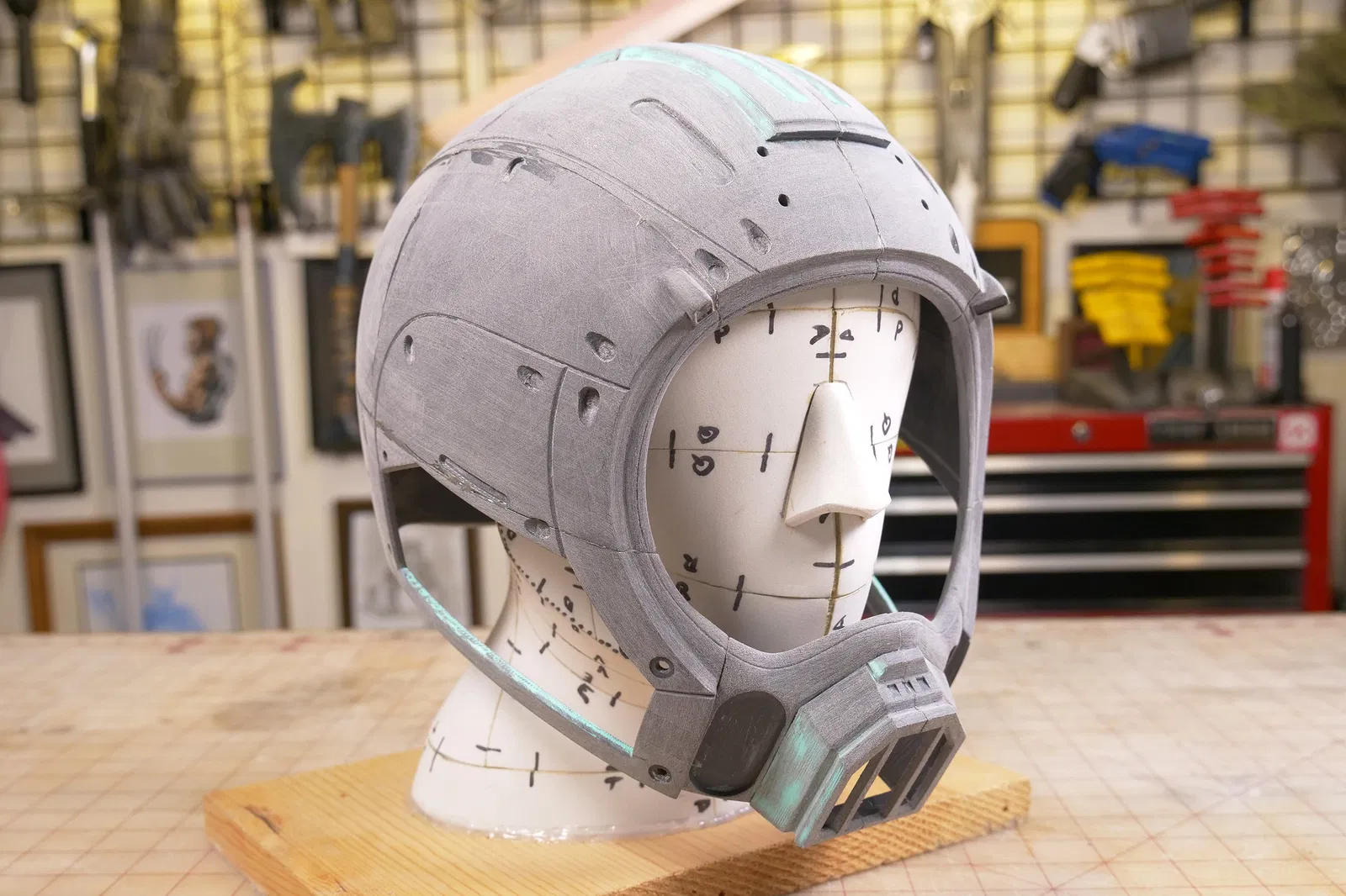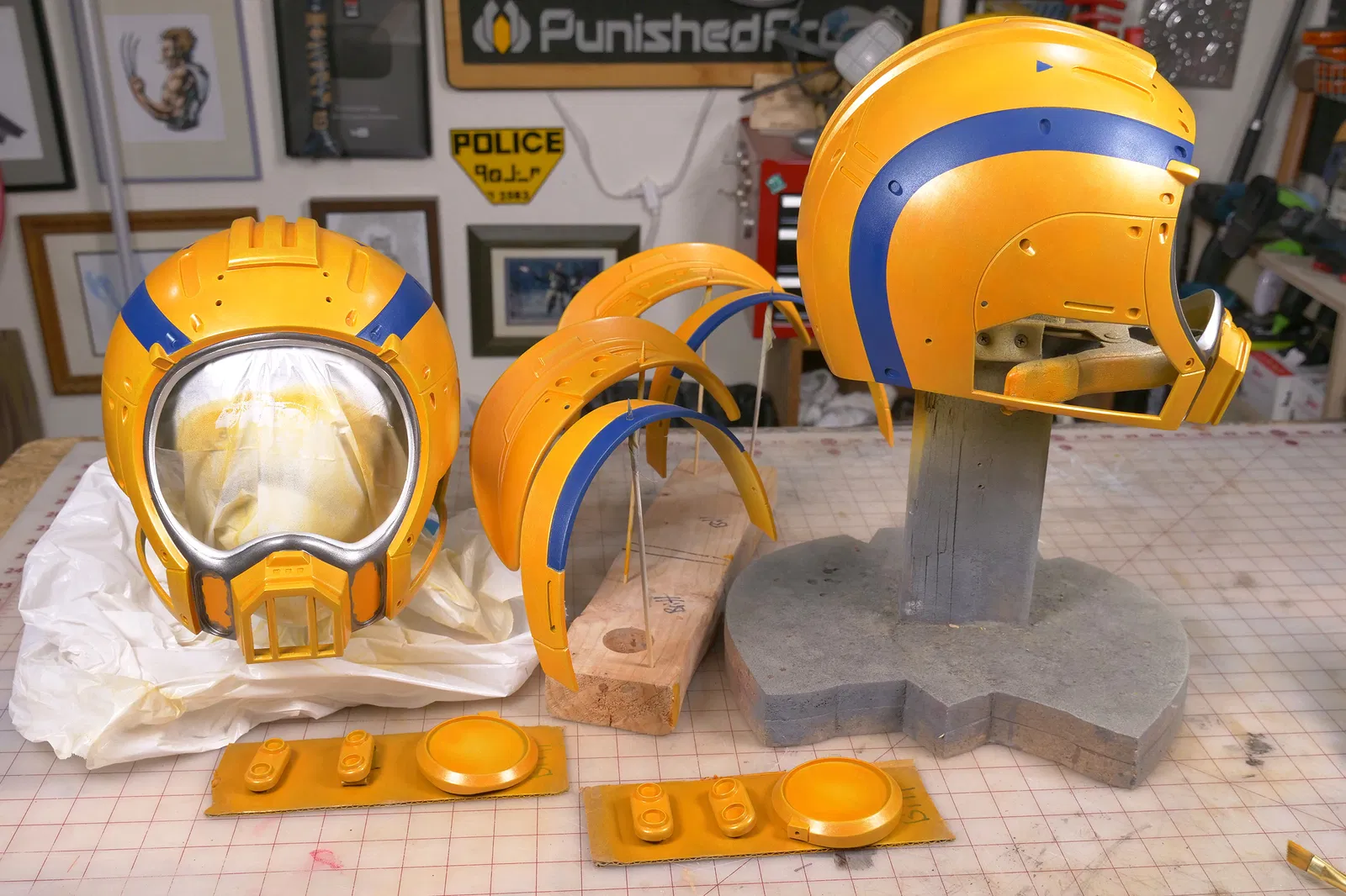 Phiên bản "lớn" dành cho đầu có chu vi 23 inch và phiên bản "nhỏ" dành cho đầu có chu vi 22 inch. Cả hai kích cỡ đều được thiết kế để dùng với kính che mặt mua tại đây. Bạn cũng sẽ cần một vài con ốc và lưới thép cho phần má.