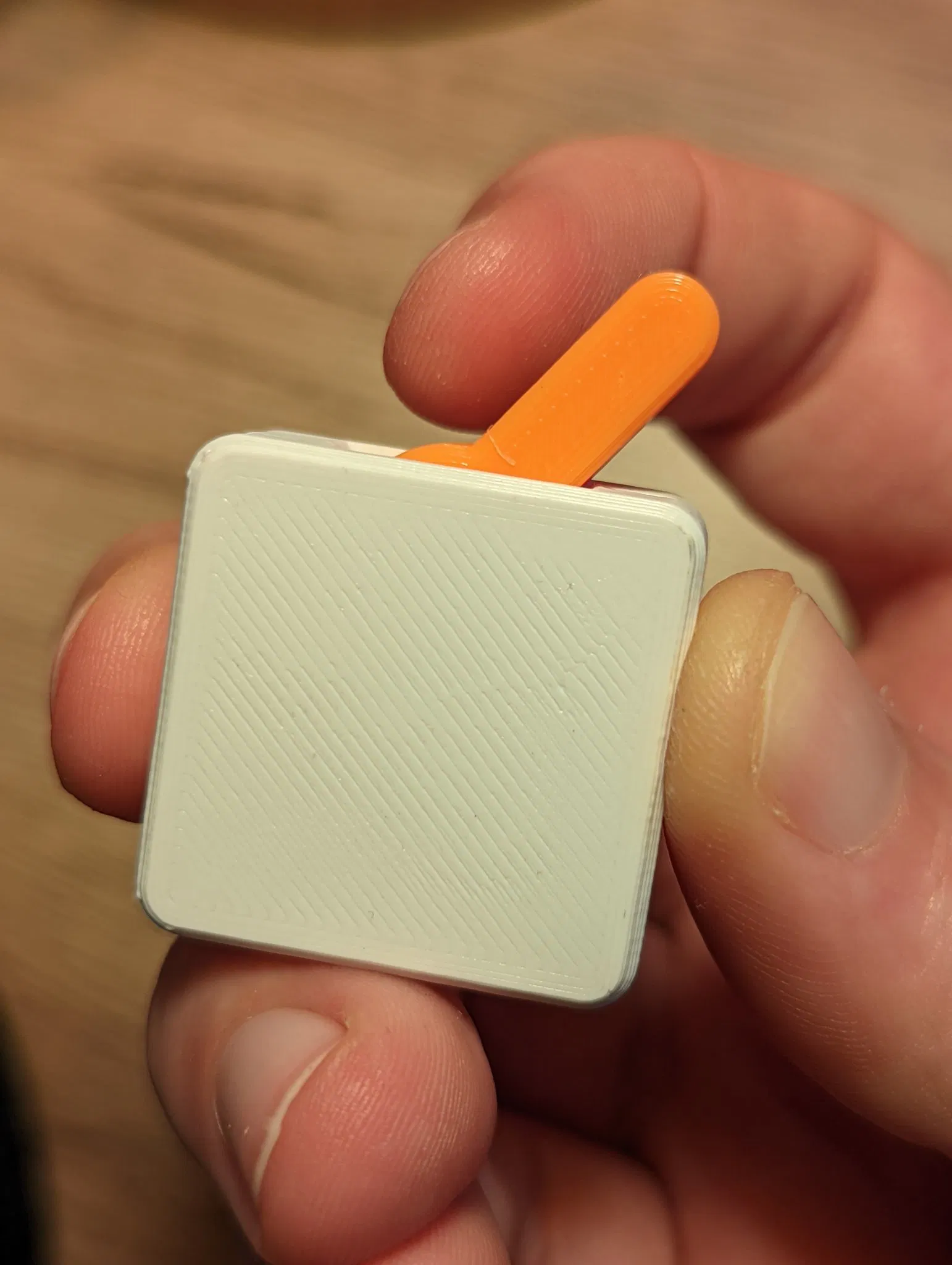 Món đồ chơi này là một công tắc bật tắt nhỏ, có âm thanh "click"! Nó có thể in hoàn toàn trong khoảng một giờ và chỉ có bốn mảnh. Bạn có thể thay đổi hiệu ứng "snap" bằng cách sử dụng tùy chọn lò xo khác nhau và/hoặc các vật liệu khác nhau. Bạn muốn bán bản in của mô hình này? Hãy xem Câu lạc bộ F3D của tôi! ### Cập nhật - CHỈNH SỬA (18 tháng 5 năm 2024): Tôi đã tạo ra một phiên bản in ngay tại chỗ của công tắc này! Nó in nhanh hơn và sử dụng ít filament hơn. Công tắc bật tắt Fidget In-Place