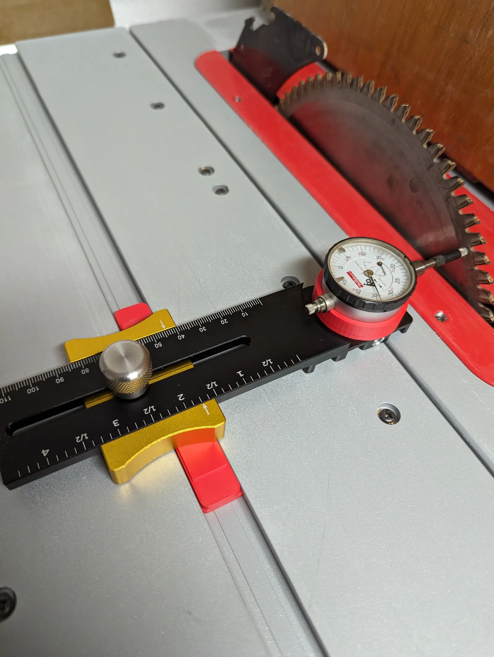 Tôi đã chỉnh sửa lại thiết kế để gắn cái kẹp đồng hồ đo bằng hợp kim từ một shop online lớn của Tàu. Cái nut gốc không khớp với t-slot của GTS 10 XC nên tôi đã remix lại thiết kế của DrAI để xài ốc zin của kẹp để gắn. Không cần dùng tới đai ốc ở đây. Phải tăng chiều cao của phần giữa lên một chút vì cái kẹp đồng hồ đo nó có rãnh cho cục trượt zin của nó.