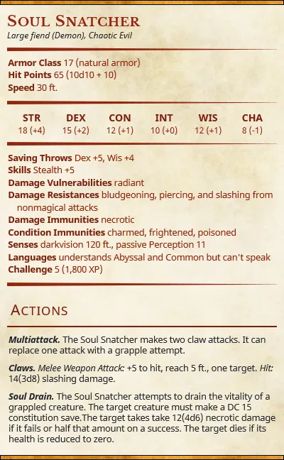 Khi tôi học đại học về thiết kế trò chơi, nhóm chơi game của tôi đã tạo ra một trò chơi thoát hiểm theo chủ đề nghĩa địa. Để sử dụng làm tài sản cho "Big Bad", tôi đã tìm thấy một mô hình quỷ miễn phí trực tuyến. Kể từ đó, tôi đã quên nguồn, điều này quá tệ, bởi vì thu nhỏ này có nghĩa là một sự tôn kính đối với mô hình quỷ ban đầu. Sau khi thực hiện thu nhỏ, tôi có ý tưởng đưa sinh vật này vào chiến dịch Halloween D & D. Không cần phải nói, chiến dịch đã đi qua tốt. Bởi vì tôi đã tạo ra thu nhỏ này cho một chiến dịch, tôi thực sự đã bao gồm một khối chỉ số để sử dụng với anh ta. Thưởng thức!