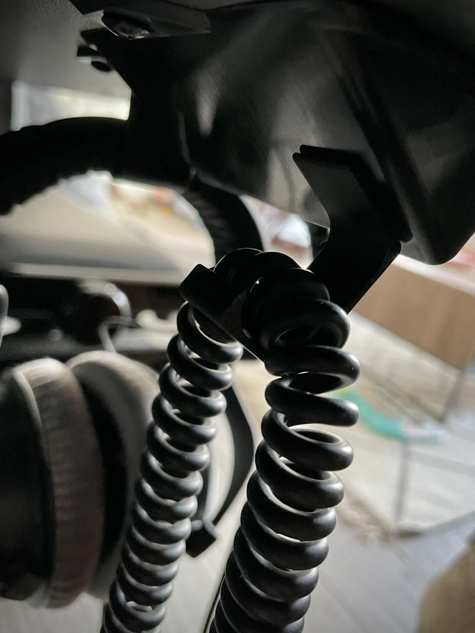 Tôi đã thiết kế giá treo cáp này để ngăn cáp tai nghe cuộn của tôi kéo trên mặt đất.