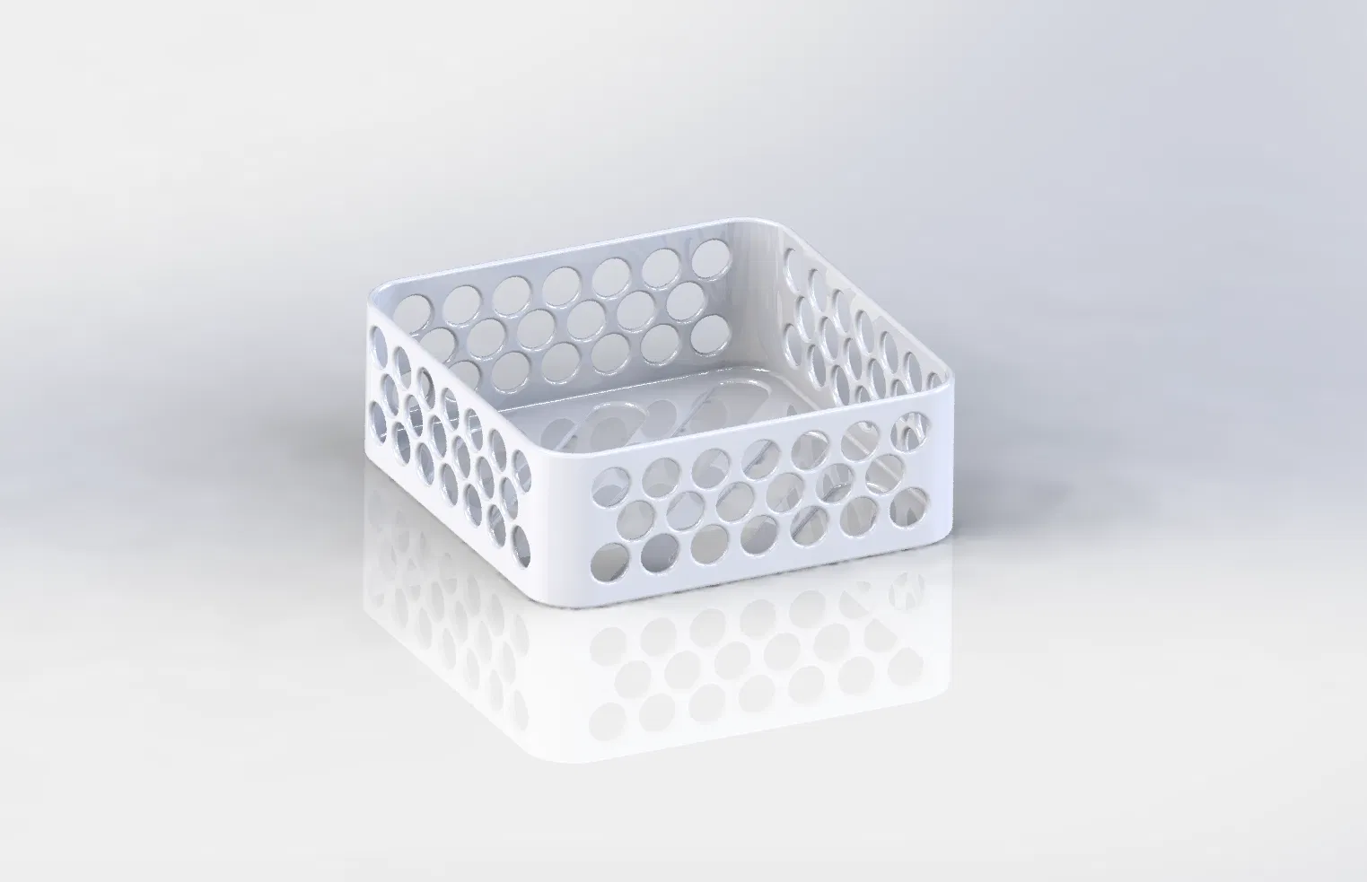 Chiếc rổ này được thiết kế để đựng đồ, với các lỗ xung quanh giúp tiết kiệm vật liệu in ấn. Bạn cũng có thể tận dụng các lỗ này để chứa thêm vật dụng nhỏ.