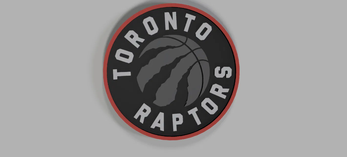 Logo đội bóng rổ Toronto Raptors phiên bản in 3D, kích thước 200x200 mm. Hoàn hảo cho người hâm mộ bóng rổ và đội Toronto Raptors.