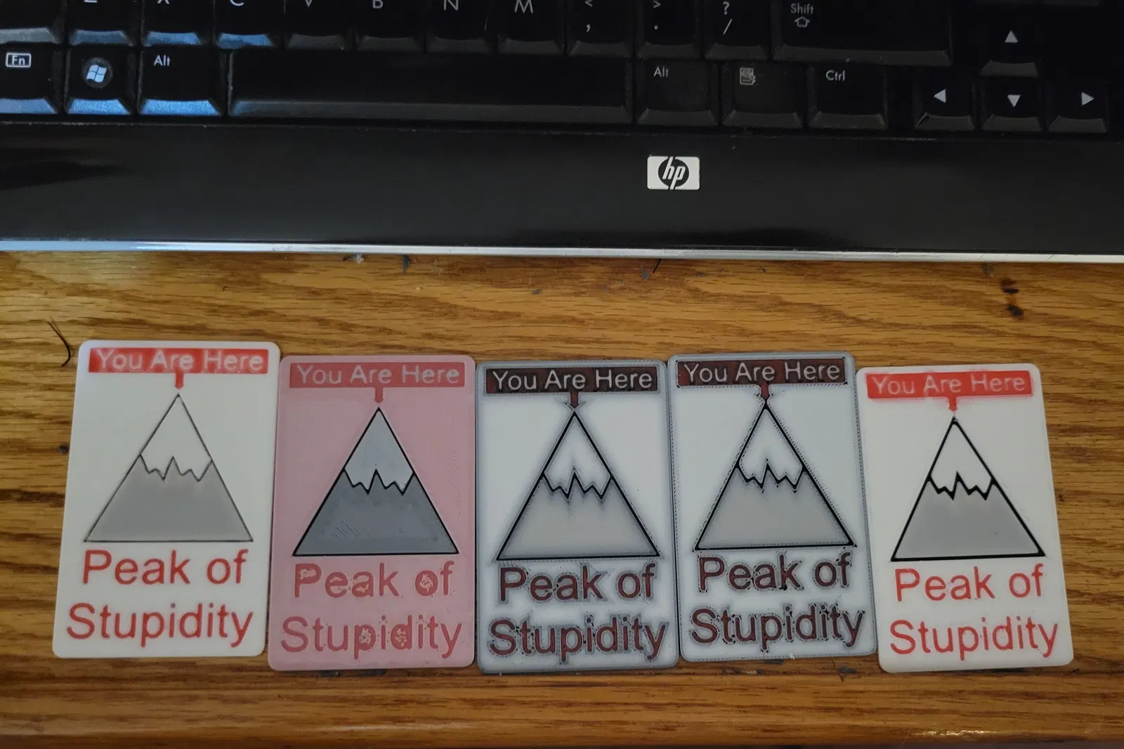 Tôi cũng đã bao gồm một thiết kế khác mà tôi đang thực hiện có tên là "các đỉnh cao của sự ngu ngốc". Tuy nhiên, nó quá nhiều để vừa trên một thẻ, vì vậy tôi đã gác lại thiết kế đó. "Đỉnh cao của sự ngu ngốc" thì hài hước hơn.