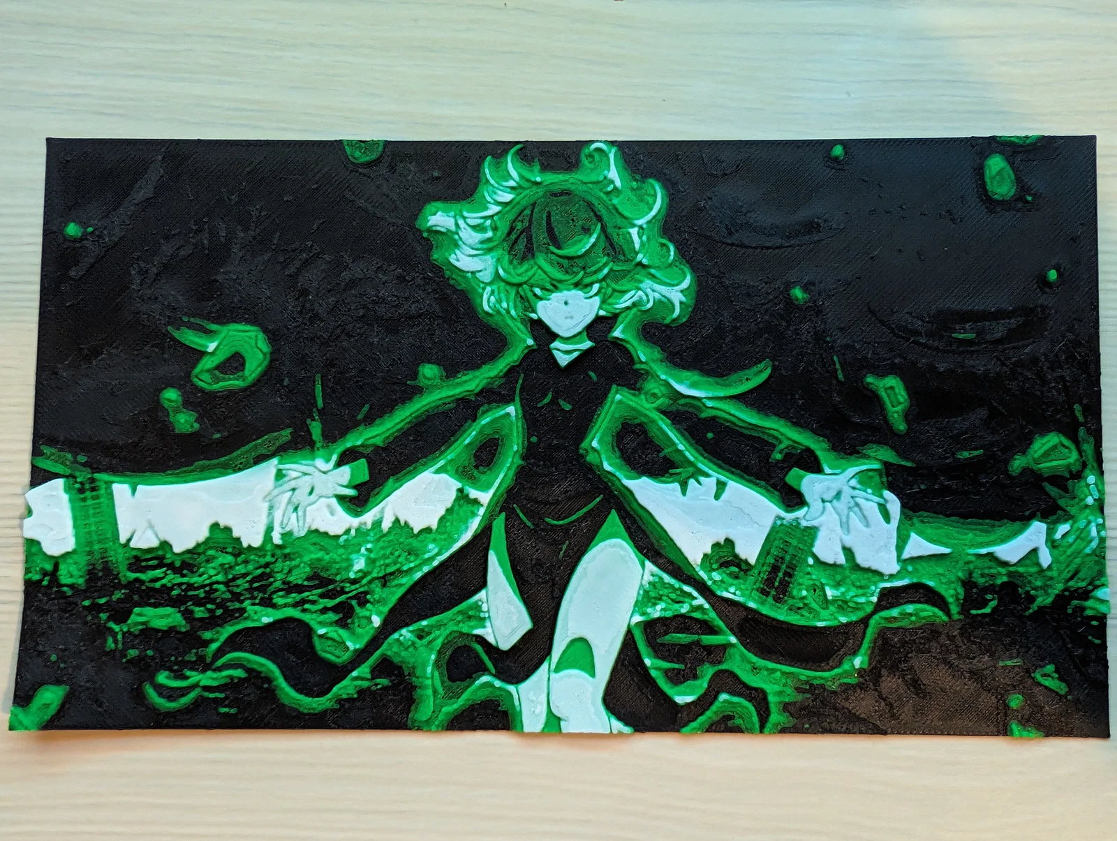 Mọi người ơi, mời mọi người thưởng thức bản in HueForge của Lốc Xoáy (Tornado) trong One Punch Man nha.