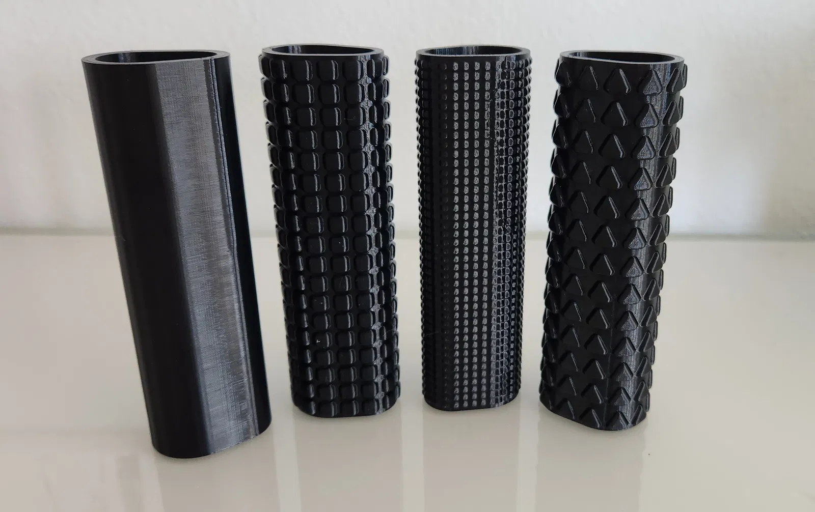 TPU là vật liệu được ưu tiên. Tùy thuộc vào mẫu tay cầm, có thể có các phần nhô nhẹ, với máy in được tinh chỉnh và vật liệu khô, chúng in khá dễ dàng và không gây ra quá nhiều vấn đề.