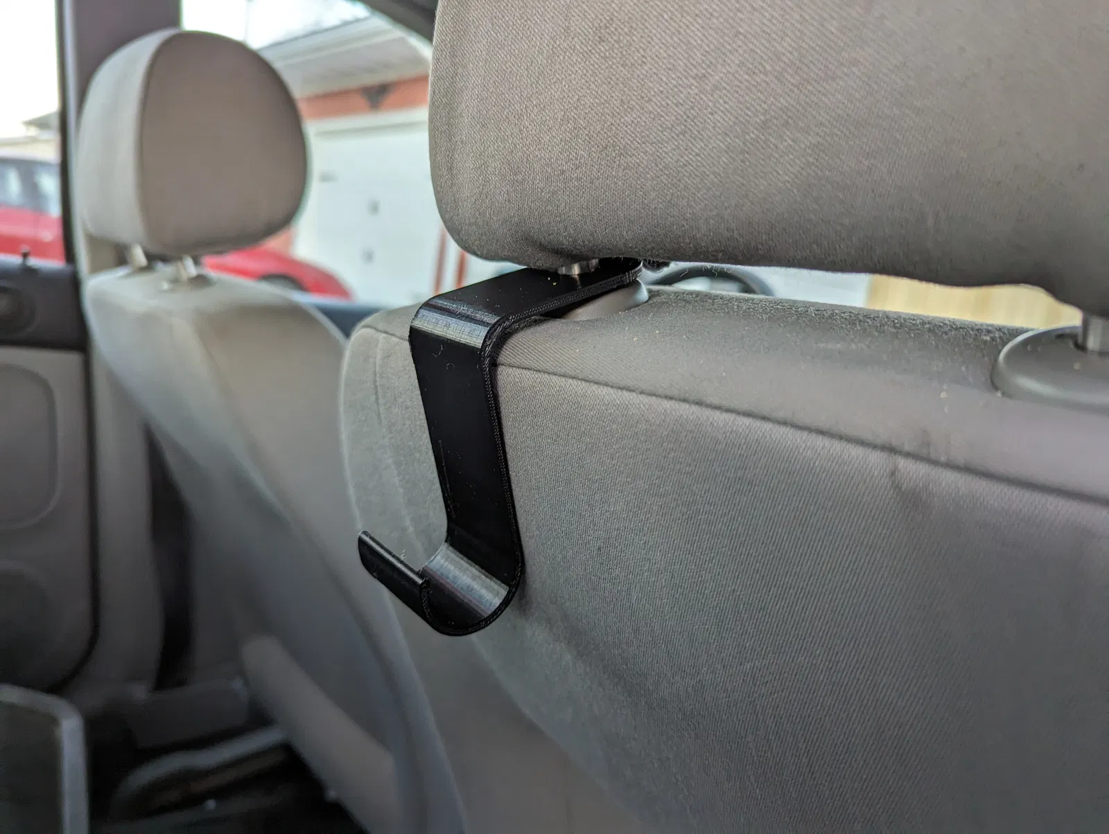 Một cái móc đơn giản để treo túi rác trong xe hơi. Móc này được thiết kế cho xe Jetta TDI wagon 2003, có kích thước lỗ 14.5mm, tâm lỗ cách đường vuông góc 55mm và phần móc dài 70mm. Có file STEP và F3D để bạn chỉnh sửa.