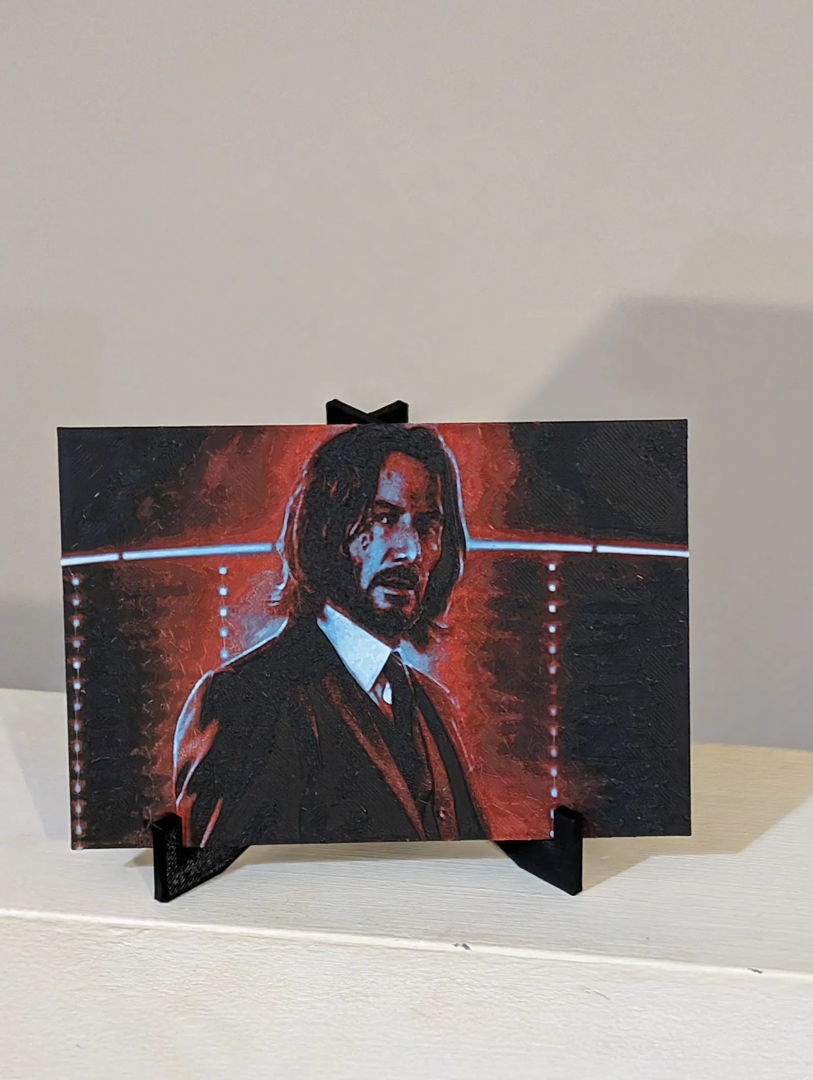 Mô hình John Wick/Keanu Reeves HueForge tái hiện Keanu Reeves trong John Wick 4, với màu sắc rực rỡ. Hướng dẫn in chi tiết và gợi ý đổi màu filament cho bạn thỏa sức sáng tạo. Hãy chia sẻ tác phẩm của bạn nhé!