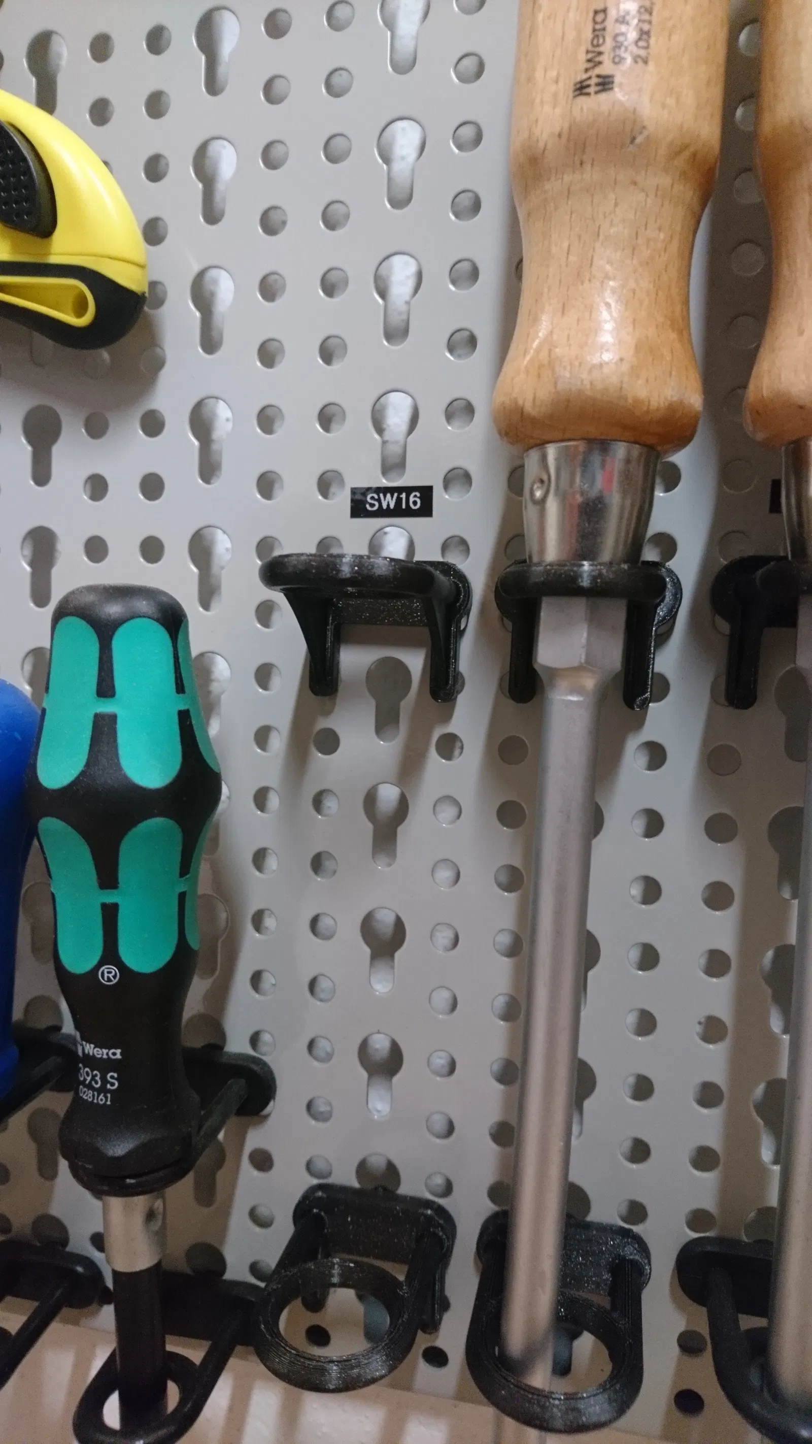Đây là kệ đựng tua vít cỡ lớn, được thiết kế đặc biệt để treo trên các lỗ đục kiểu Châu Âu (Euro perforation), giúp bạn cất giữ dụng cụ một cách gọn gàng và tiện lợi. Thích hợp cho các loại tua vít nặng và có kích thước lớn.