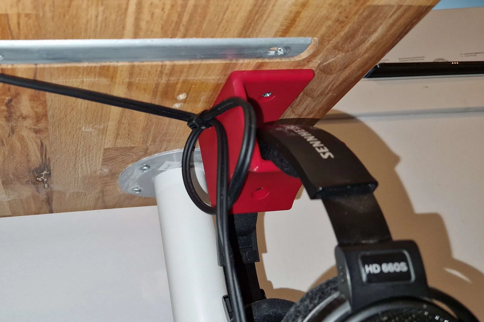 Nắm tai nghe - dưới bàn làm việc với quản lý cáp Sử dụng dây buộc để buộc dây cáp vào móc áo