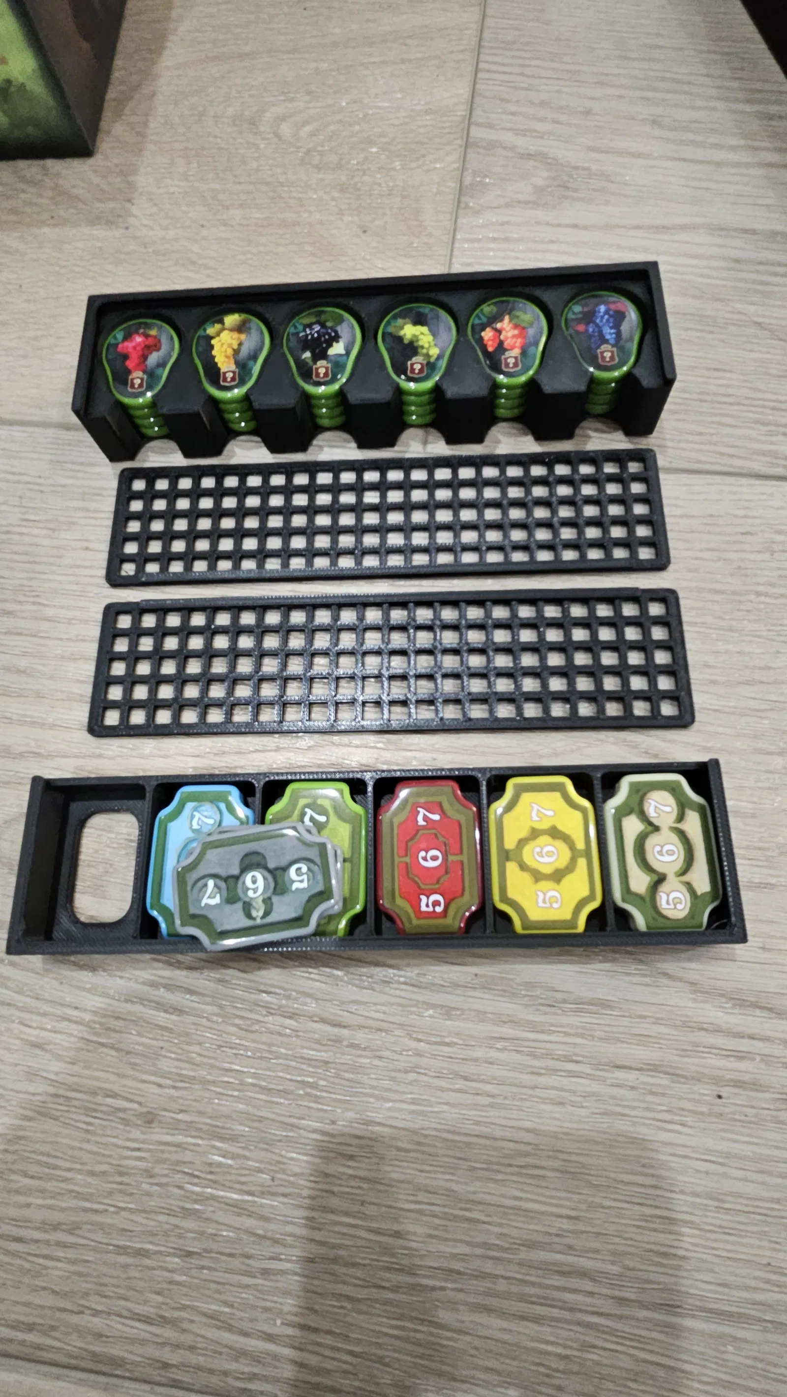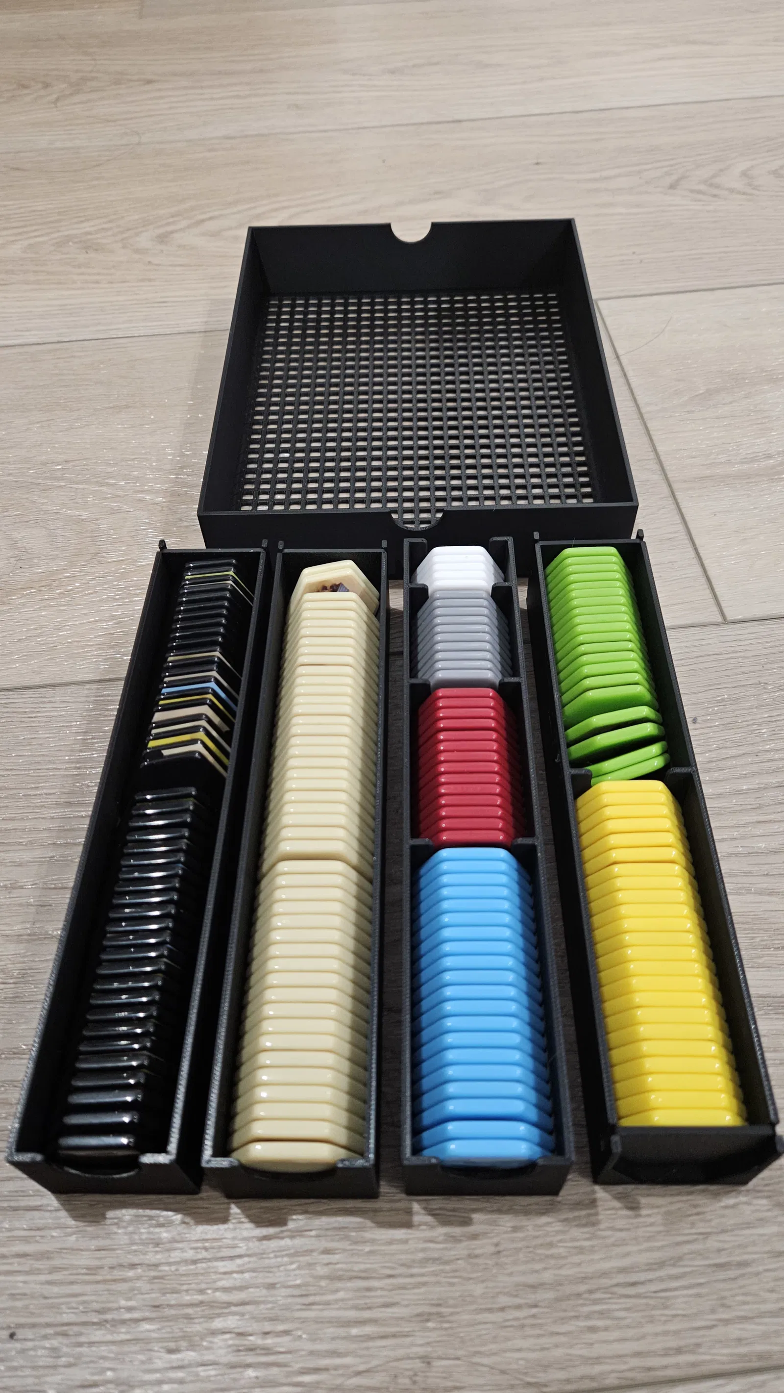 Đây là một bộ khay sắp xếp tương thích với The Castles of Burgundy Special Edition - Chỉ dành cho bản acrylic. Các khay gốc đi kèm với game được thiết kế rất tốt và phù hợp cho các ô bằng giấy catton. Tuy nhiên, tui thấy rất phiền khi phải xếp hết các ô acrylic vào khay gốc, cho tất cả các ô lục giác acrylic vào túi, rồi sắp xếp lại các túi để giảm thiểu độ hở của nắp hộp. Tui tin rằng việc sử dụng phiên bản khay của tui, việc thiết lập bàn chơi và dọn dẹp sẽ nhanh hơn rất nhiều.
