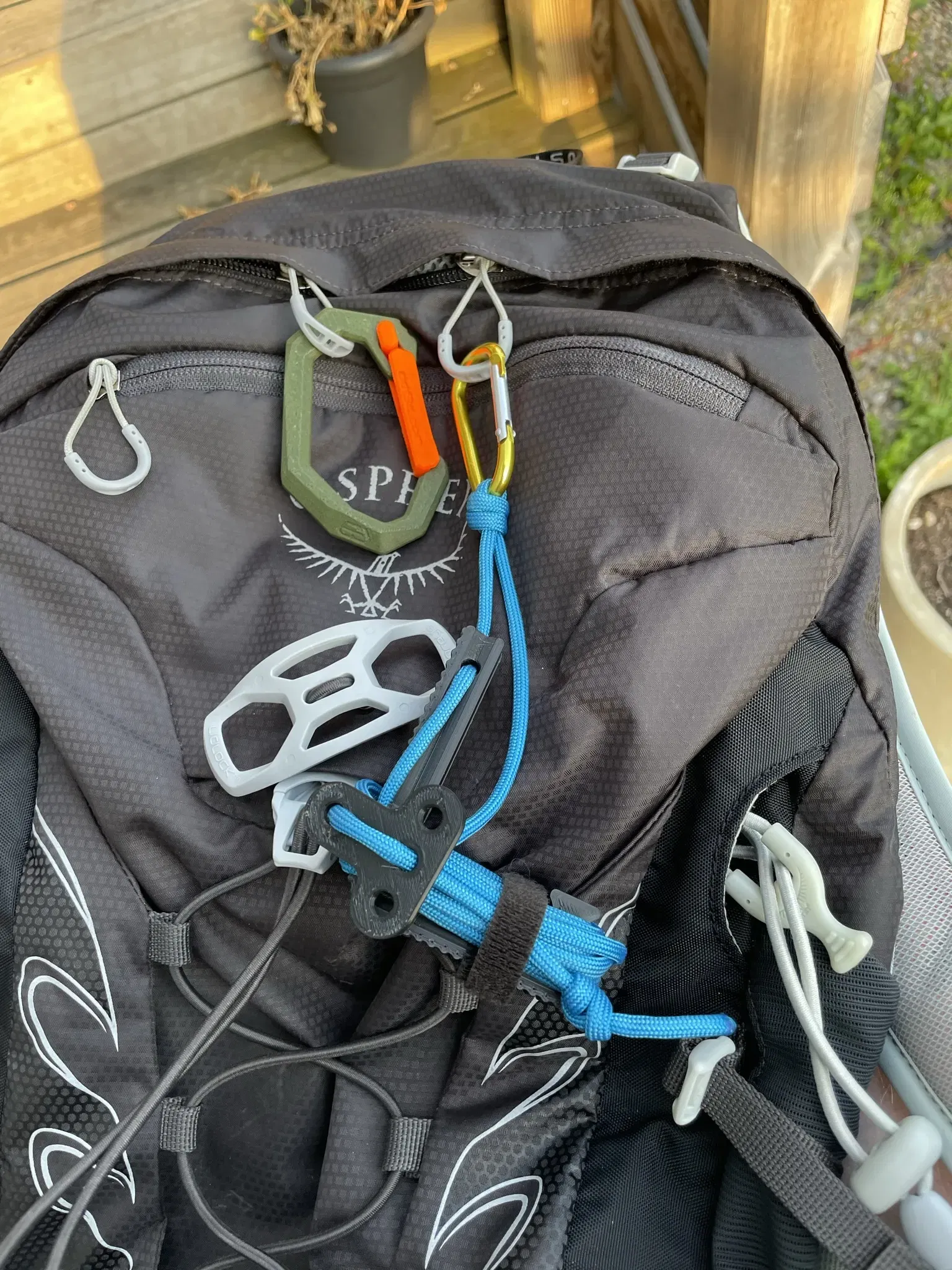 Móc đẹp để mang theo khi bạn đi bộ đường dài. Tôi đã thử nghiệm móc với 40kg khi in bằng pla và 4 lớp sử dụng vòi phun 0.4mm. Tôi chưa bao giờ đi xa hơn vì thường thì một cái ba lô không nặng như vậy.