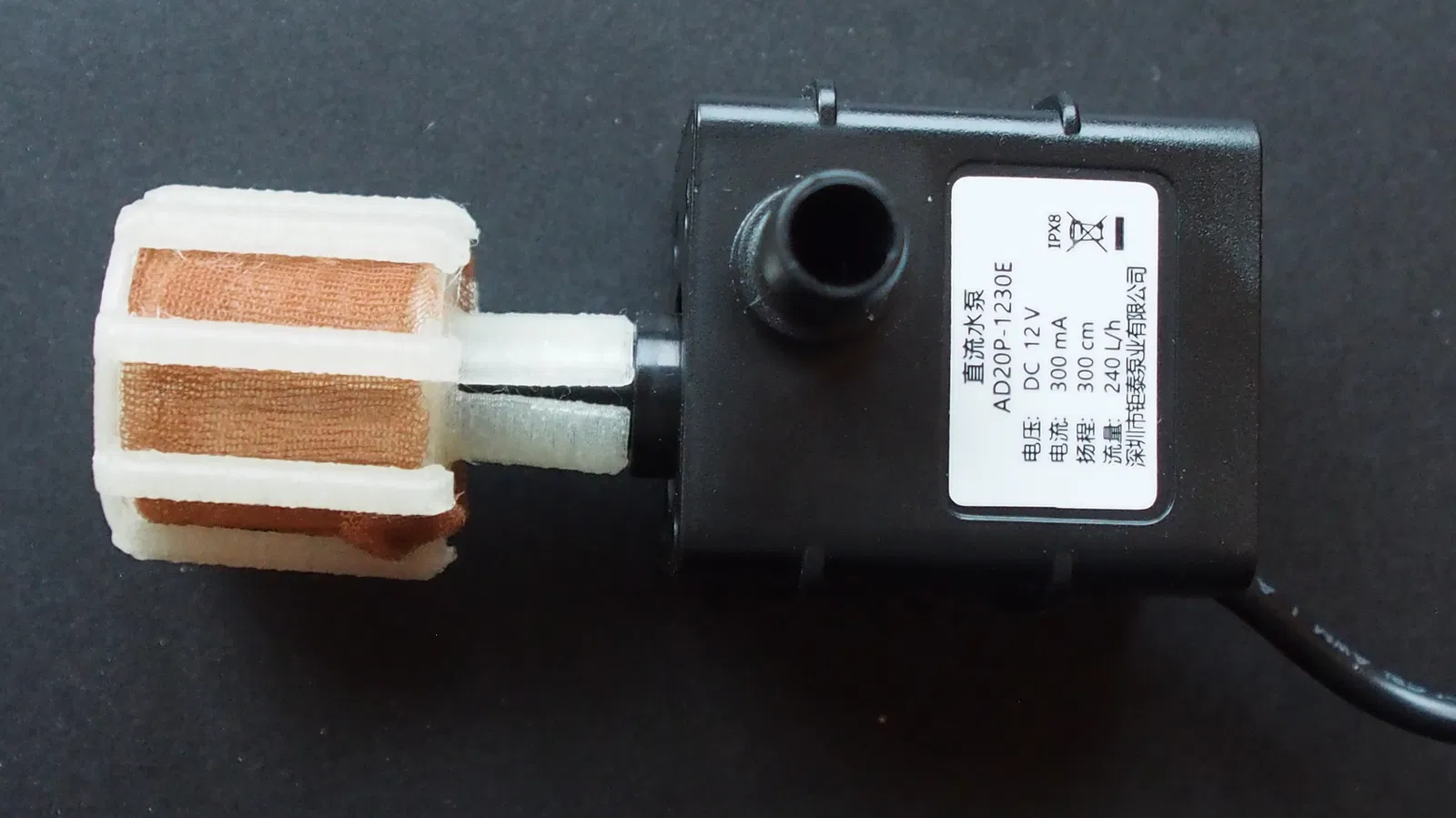 Cái bơm AD20P 12V này tui dùng để bơm dung dịch trong cái lều thủy canh á. Còn cái bộ lọc này là để bảo vệ cái bơm khỏi bị nghẹt đó nha. Bộ lọc này gồm hai phần, thân và vỏ ngoài, có quấn vớ nữ để chống bung.