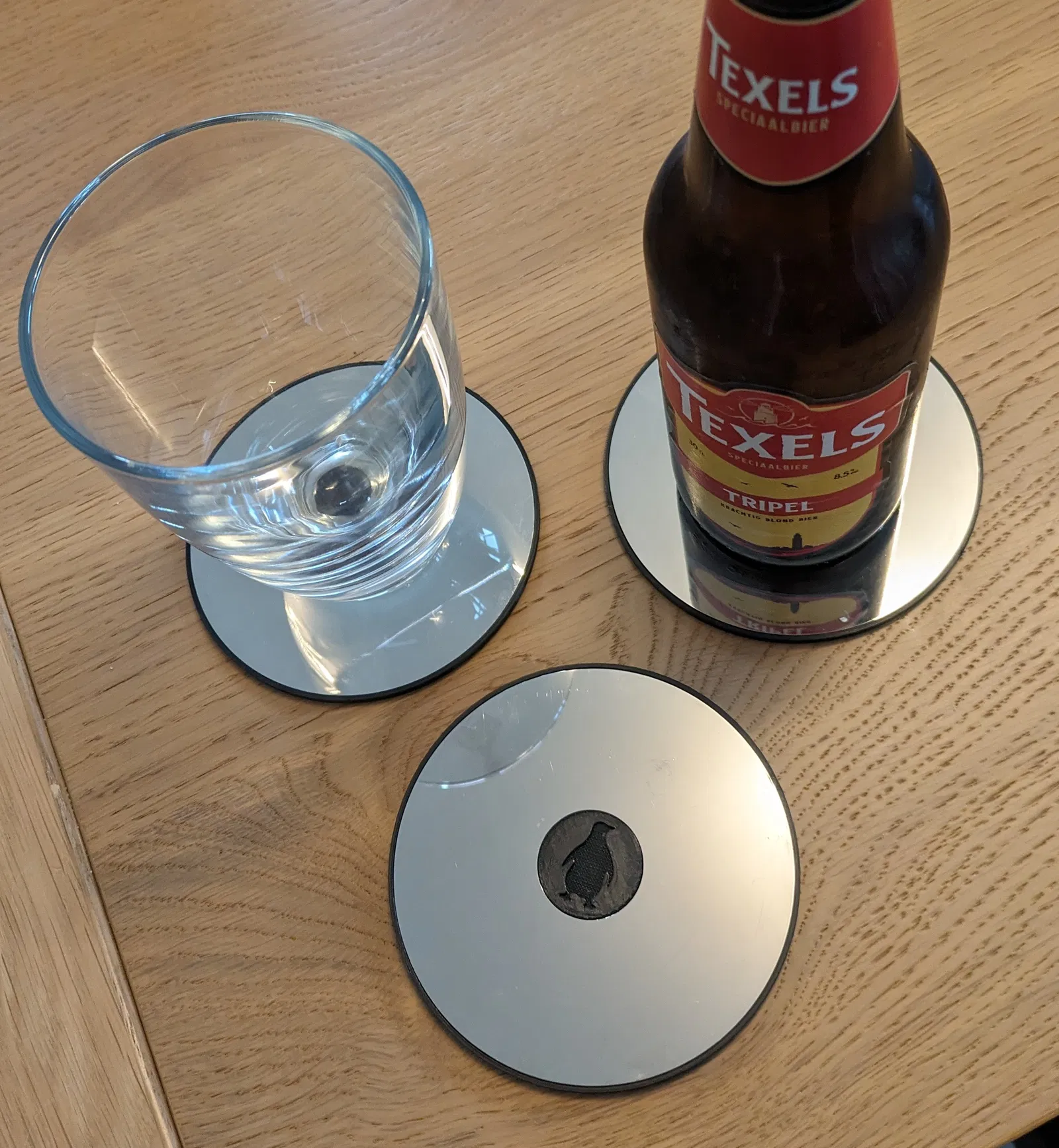 - In cái này bằng PETG hoặc PLA, có thể thêm logo (như con chim cánh cụt) hoặc chữ cái đầu tên của bạn ở giữa. Có thể cân nhắc làm phẳng lớp trên cùng.