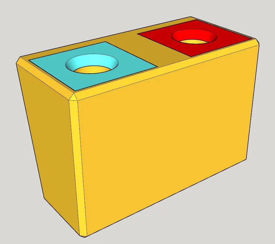 Giá đỡ cho 2 chiếc bàn chải kẽ răng TePe®. Mẫu này mở ở dưới để các bàn chải có thể khô tốt. Các tấm (màu sắc) để phân biệt rõ ràng ai sở hữu bàn chải nào đã được cố định bằng keo siêu dính. Cần 2 chiếc.