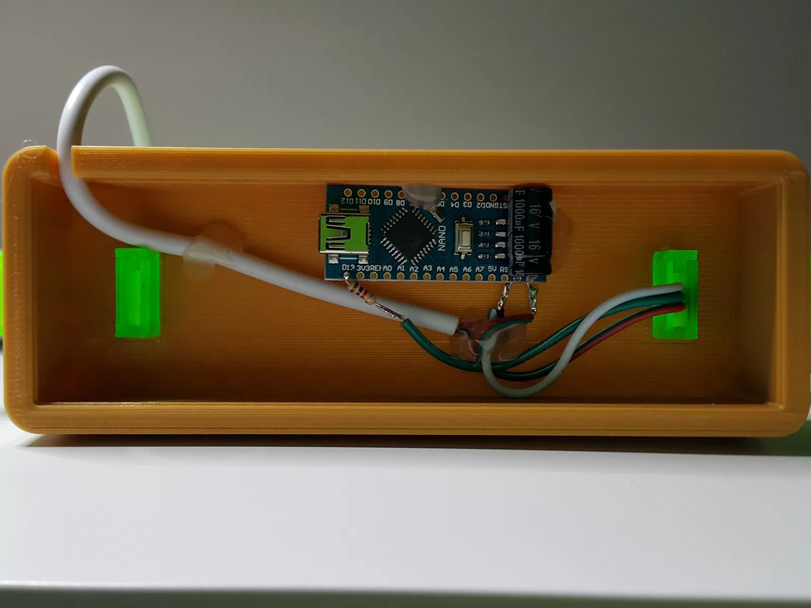 Đối với phần cây, bạn hãy dùng bất kỳ sợi nhựa trong nào. Bạn cũng có thể thử nghiệm với sợi nhựa màu trắng đục. Đối với phần đế, hãy dùng bất kỳ loại sợi nhựa nào bạn thích. Độ cao lớp in 0.2-0.25 mm, mật độ điền đầy 100% cho phần cây và 25-30% cho phần đế, không cần supports. Nhỏ vài giọt keo siêu dính để cố định nắp lưng của cây. Nếu cần, dùng keo nóng để cố định cây lên đế. Sử dụng tụ điện 470-1000 mF trên chân VIN và GND của Arduino, cũng như điện trở 500 Ohm đến 1 kOhm trên chân digital. Tôi đã sử dụng bản phác thảo DemoReel100 từ thư viện FastLed Arduino, nhưng bạn có thể thử nghiệm với bất kỳ bản phác thảo nào bạn thích. Chúc bạn in vui vẻ và có những ngày lễ an lành!