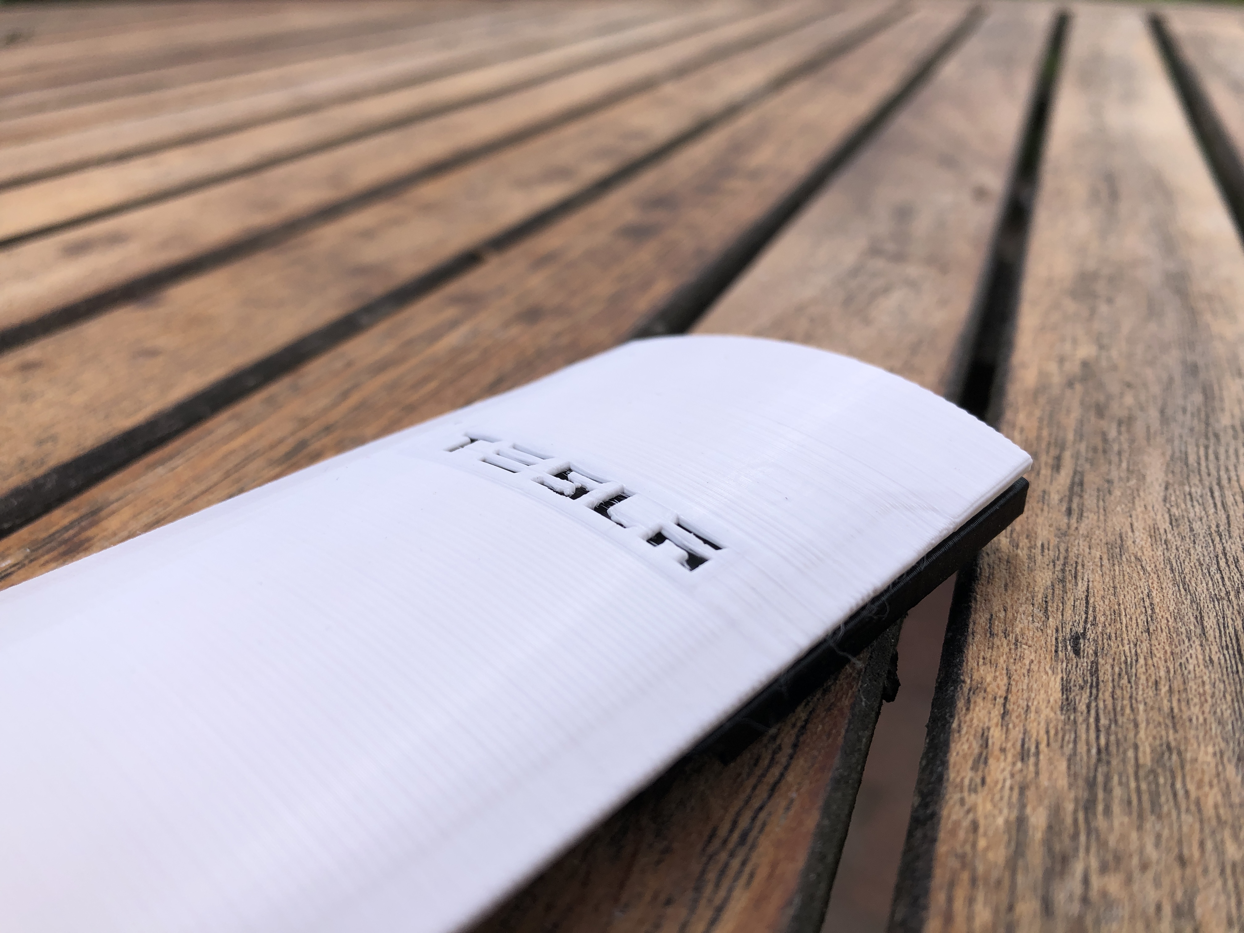 In các tấm bên khá là khó với máy in FDM vì có nhiều chỗ bị rung lắc. Tôi đã in chúng đứng thẳng, với cạnh dài thẳng hàng với trục y và tôi đã giảm một nửa tốc độ gia tốc. Bạn sẽ phải bật hỗ trợ từ mặt bàn in. Không cần hỗ trợ bên trong, mô hình có một vài thanh đỡ nhỏ trong logo Tesla. Những thanh này cũng phải được gỡ bỏ sau khi in.