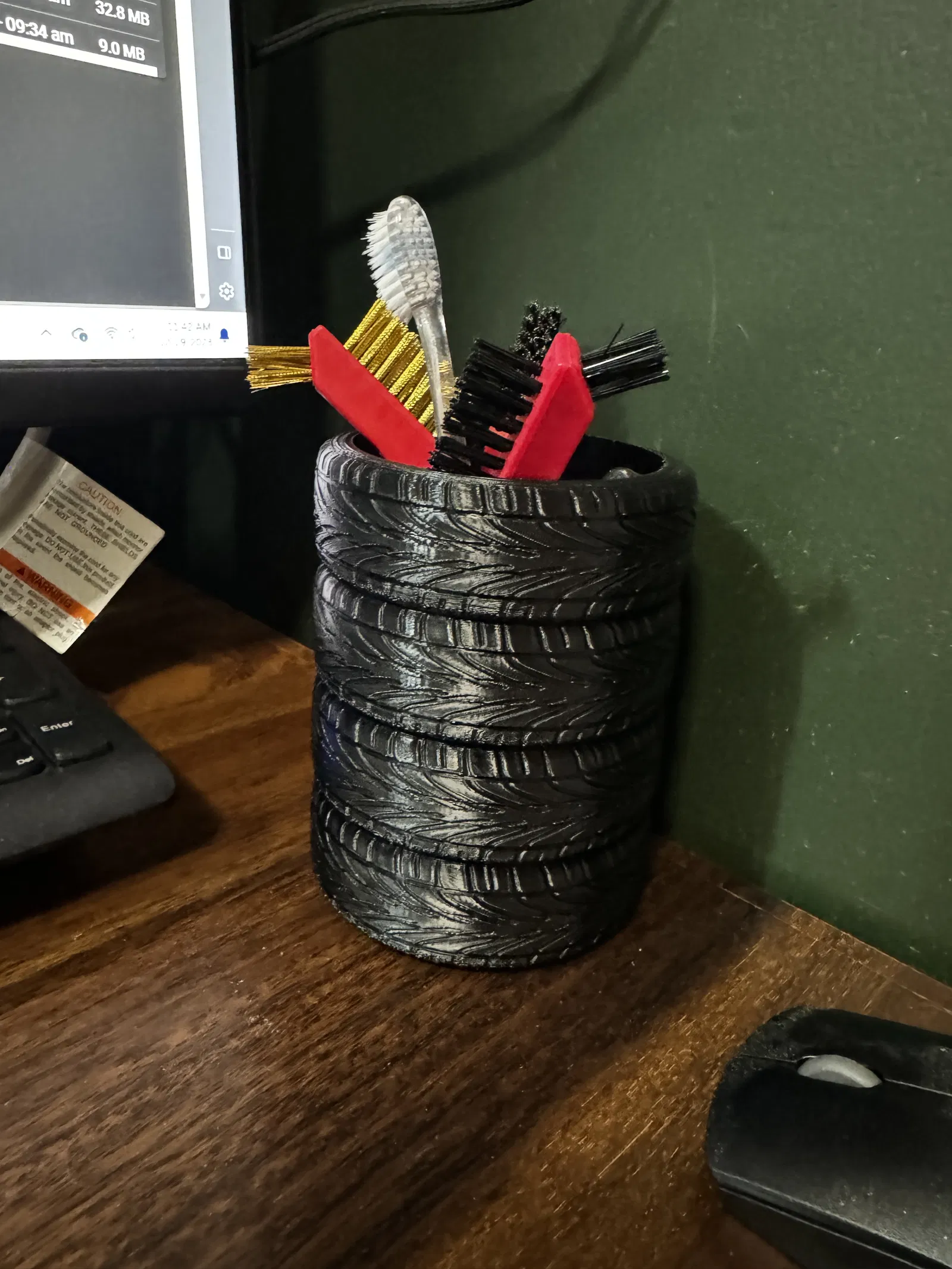 THÙNG RÁC MINI ĐỂ BÀN TRÔNG GIỐNG CHỒNG LỐP XE. CÓ THÊM NẮP VÀNH TÙY CHỌN. CHỒNG LỐP XE LÀ BẢN REMIX TỪ MỘT MẪU TRÊN THINGIVERSE VỐN DĨ LÀ CÁI BÚT, NHƯNG TÔI TỰ THIẾT KẾ NẮP VÀNH TRONG TINKERCAD. CÓ THỂ CĂN CHỈNH TO NHỎ TÙY Ý. TÔI DÙNG ĐỘ ĐẶC 20% VÀ NÓ RẤT CHẮC CHẮN.
