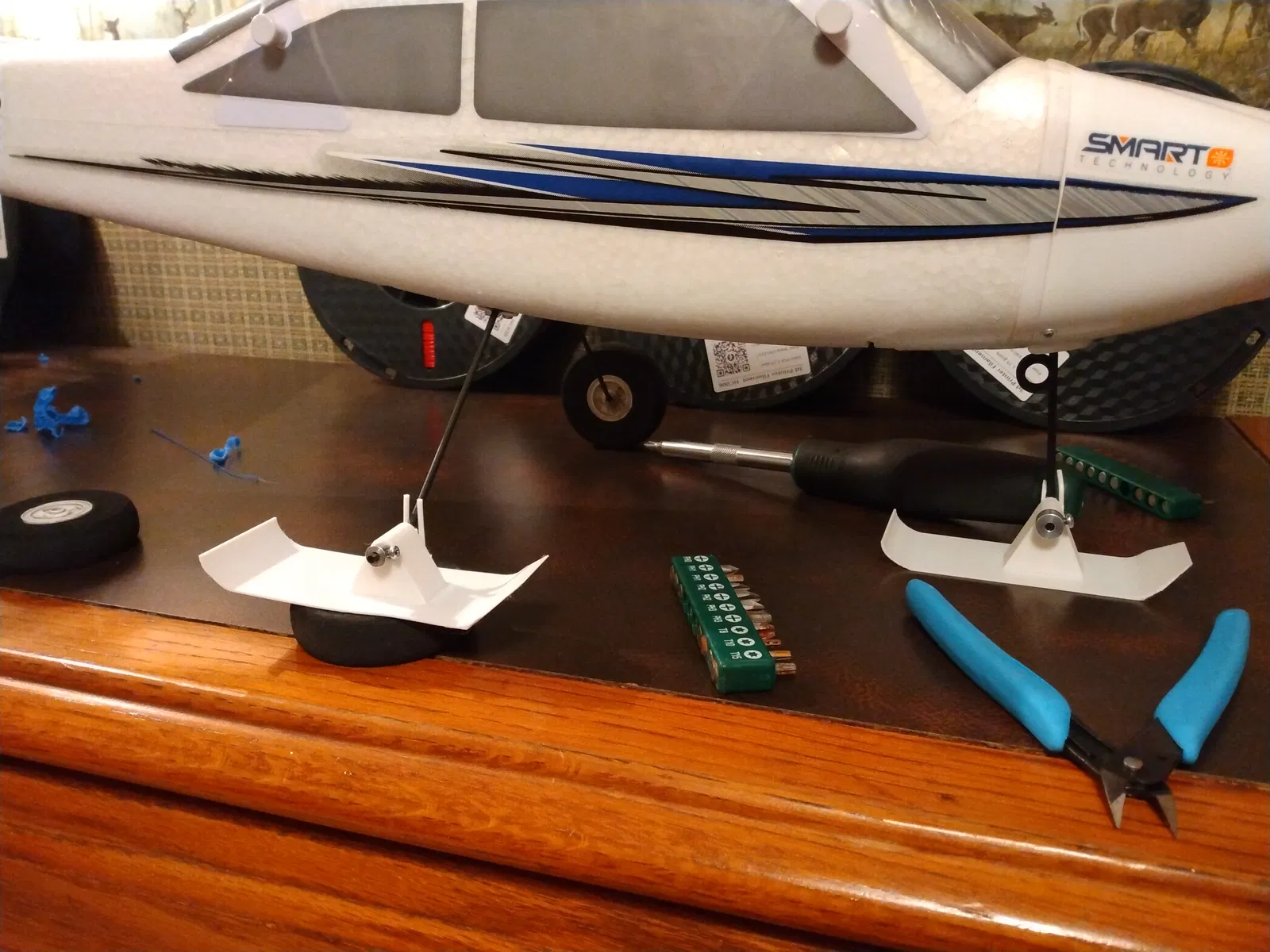 Ván trượt tuyết cho máy bay RC. Phù hợp cho máy bay có trục bánh xe 3mm, có thể cần điều chỉnh lỗ khoan. Thiết kế để máy bay ngả nhẹ về phía sau khi bay. Cần dán thêm cục chặn bằng PLA.