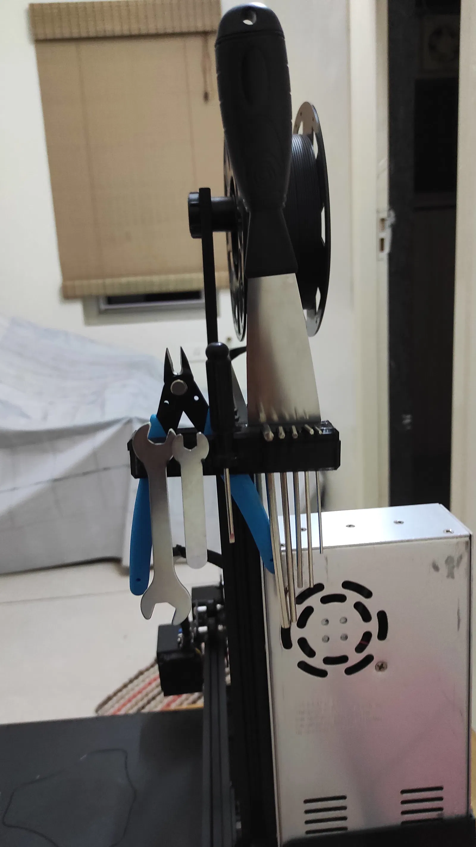 Giá đỡ dụng cụ được chỉnh sửa để phù hợp với mọi loại dụng cụ đi kèm với máy in 3D Ender 3, giúp bạn cất giữ gọn gàng các phụ kiện.