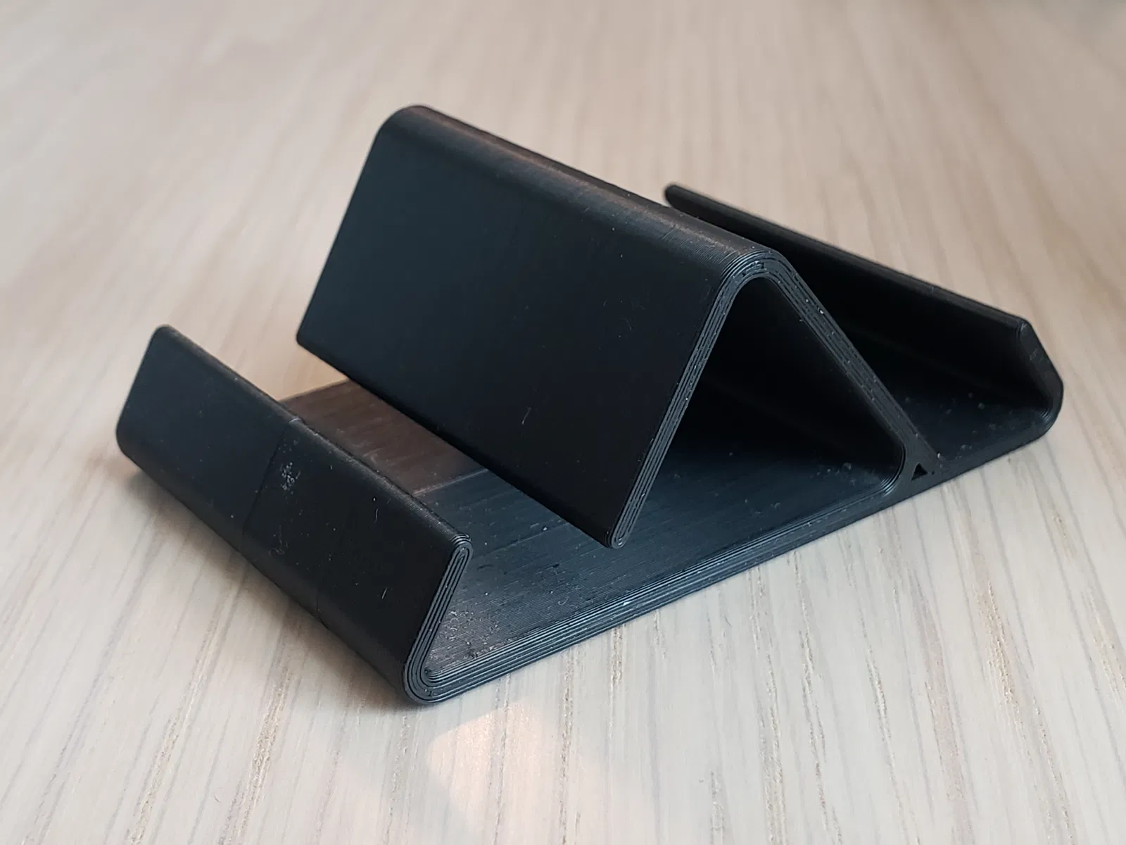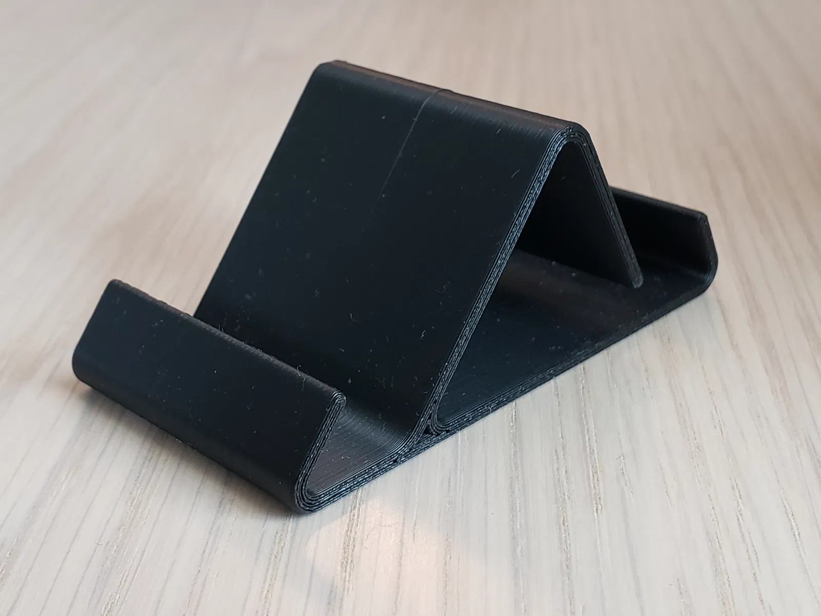 Nhiều giá đỡ khác mà tôi thấy có vẻ quá cồng kềnh, hoặc trông không đồng nhất từ đầu này sang đầu kia, hoặc là mất quá nhiều thời gian để in hoặc quá mỏng manh. Thiết kế một đường thẳng của giá đỡ này cho phép nó vừa chắc chắn vừa mỏng. Nó giữ hầu hết các điện thoại thông minh cả theo chiều dọc và chiều ngang, mặc dù nó sẽ không vừa với các ốp lưng quá dày.