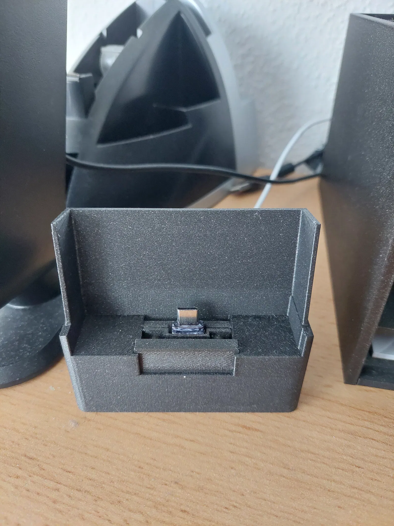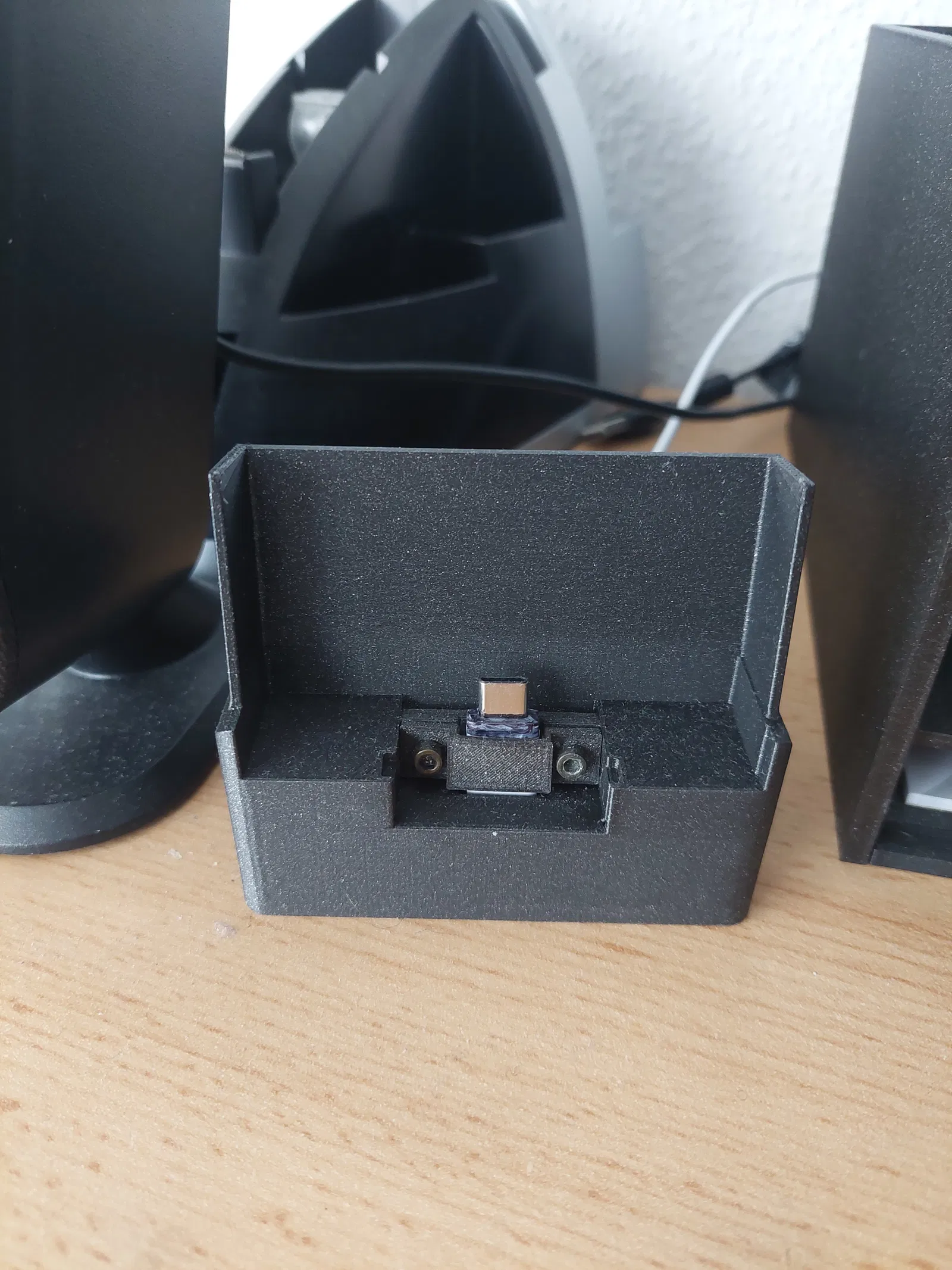 Bực mình vì cái đế sạc mua ngoài tiệm chỉ sạc được có mỗi cục pin mà không kết nối với máy tính được, nên tui tự thiết kế cái giá đỡ cho điện thoại của mình, có thêm rãnh đi dây cáp kết nối nữa. Dây cáp được giữ bằng hai con ốc M3x8. Cái này tui dùng cho con Galaxy A52S với dây cáp zin của nó thì thấy ok, nhưng chắc cần chỉnh sửa lại chút đỉnh cho các loại điện thoại và dây cáp khác nha.