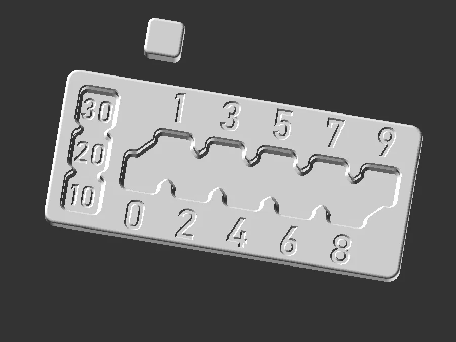 Cái đếm số độc đáo với các khối lập phương, lý tưởng cho các trò chơi bàn cờ. Có 3 kích cỡ (6, 7, 8mm) và 2 phiên bản (có/không có thanh trượt) để bạn lựa chọn. Tải ngay file STL để in 3D nhé!