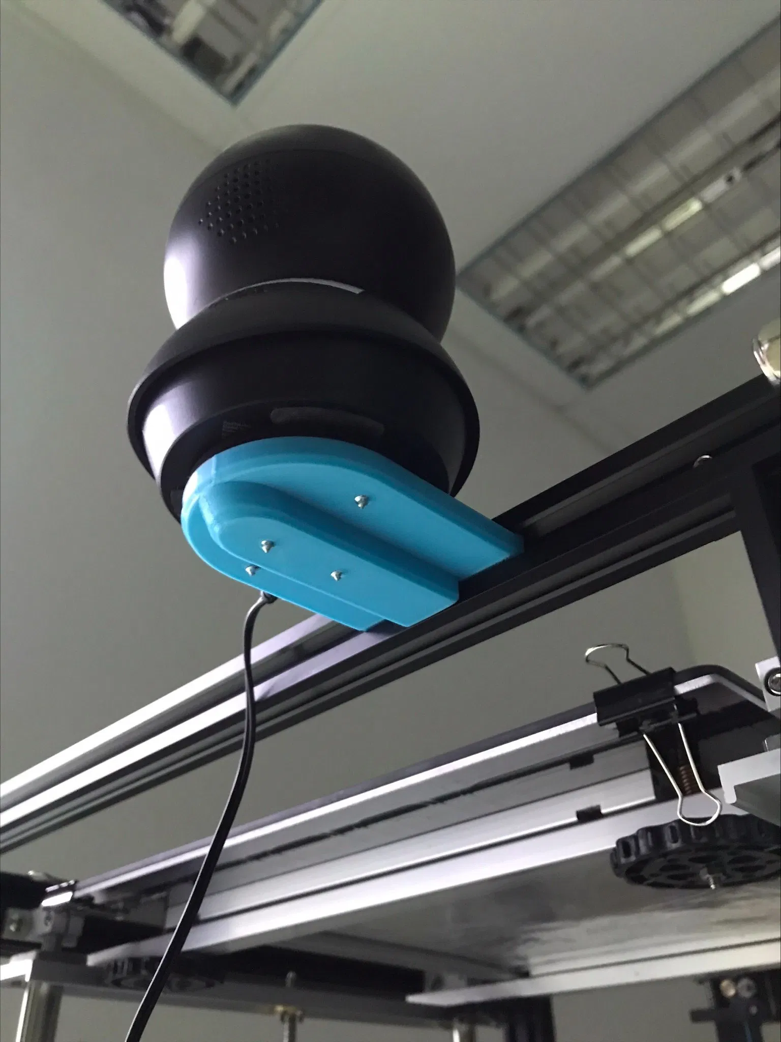Cái đế này được thiết kế để đặt camera an ninh, giúp anh em thấy toàn bộ quá trình in ấn. Lắp vào thanh nhôm dễ dàng, có thể thêm đế phụ để chắc chắn hơn. Sử dụng ốc M3 tự khoan.