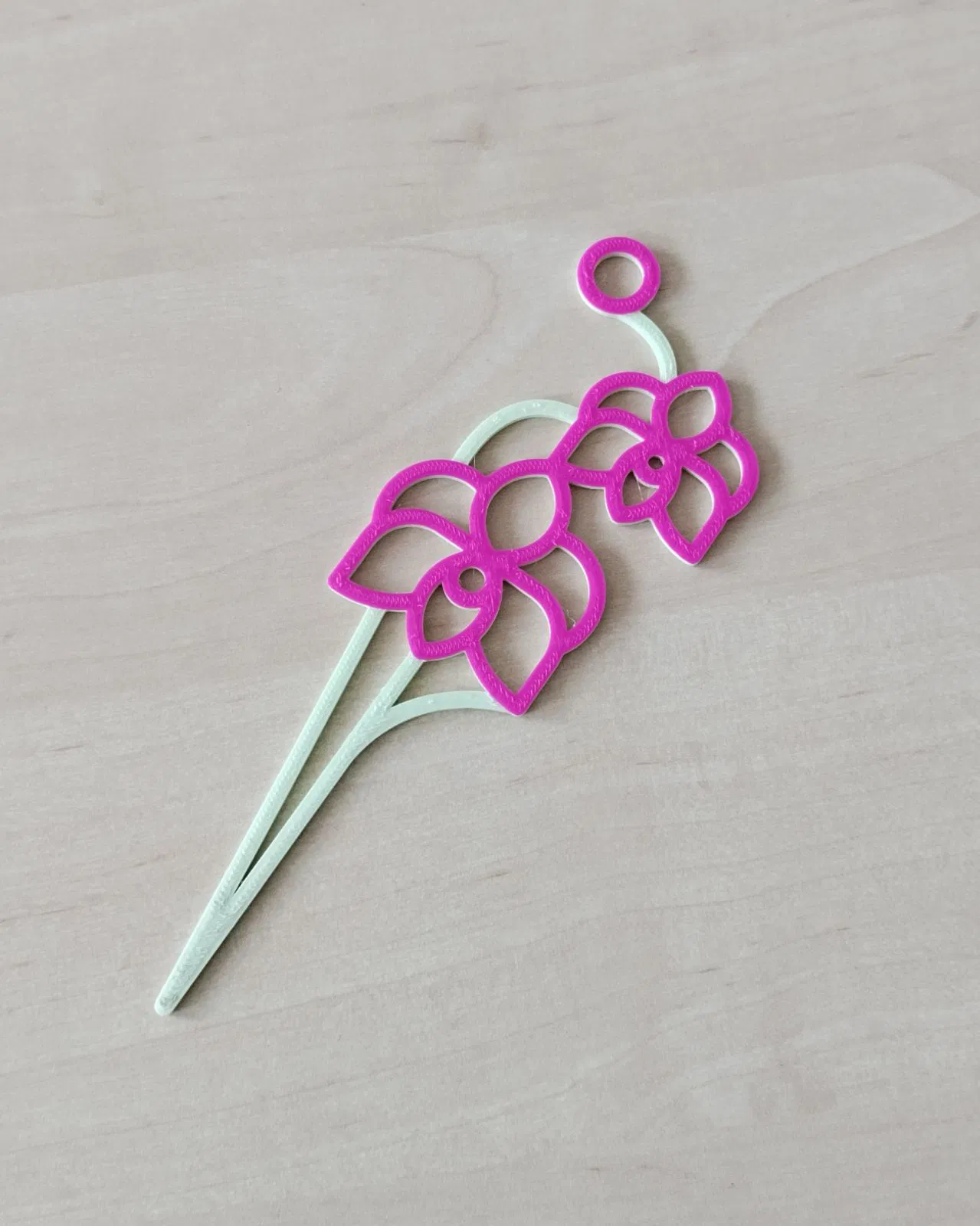 Cái đế đỡ cây này lấy cảm hứng từ hình dáng của hoa lan đó. Có thể dùng làm giá đỡ cho cây leo hoặc làm đồ trang trí lúc cây chưa nở hoa. In bằng nhựa PLA (hai màu), không cần in support, chiều cao lớp in là 0.2 mm.