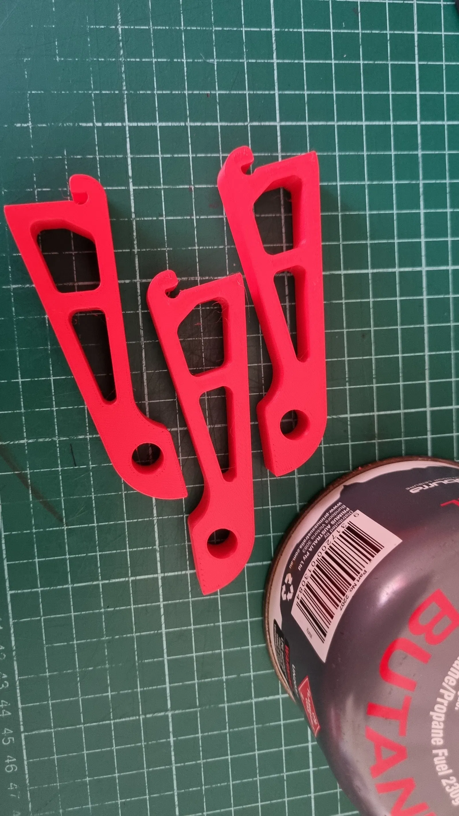 • Mỏng hơn một chút để giúp giảm trọng lượng (10mm thay vì 16mm). Dây thun làm cho chiều rộng tăng thêm là không cần thiết. Hiện tại chúng nặng 26g cho 3 chân (bao gồm cả dây thun). Một lợi ích bổ sung là dây thun có thể được sử dụng để bó các chân lại với nhau để vận chuyển.